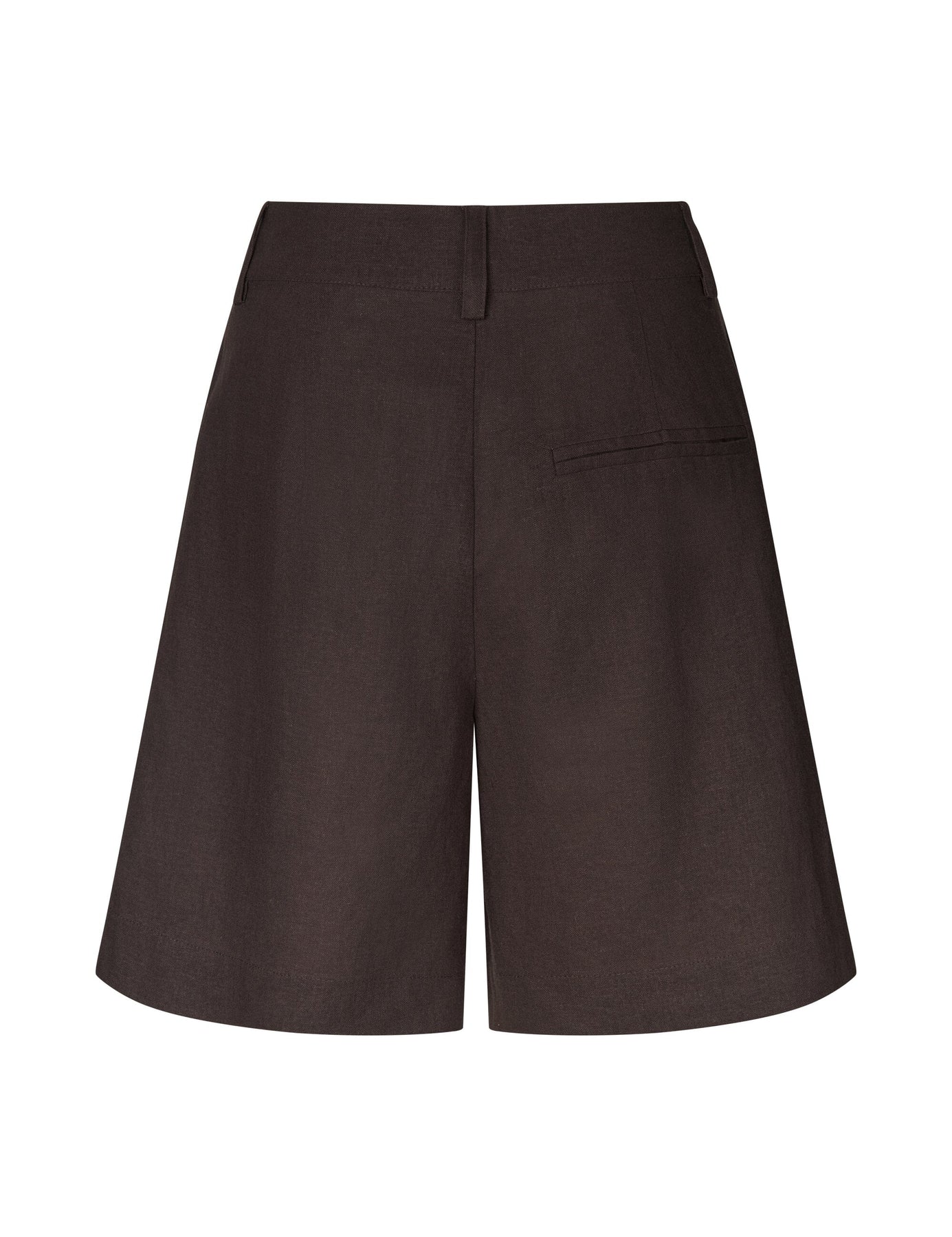 Short marron de MbyM, confectionné dans un mélange de lin et de coton. Le short a une taille haute et se ferme avec une fermeture éclair et des boutons.
