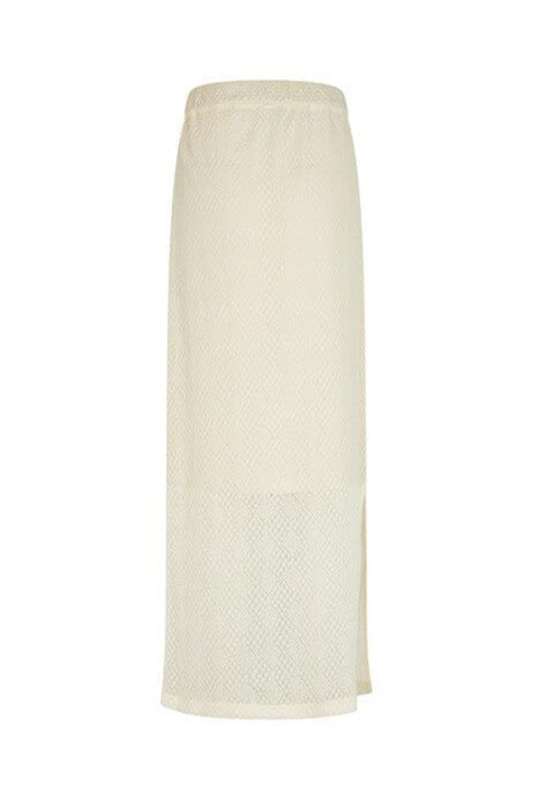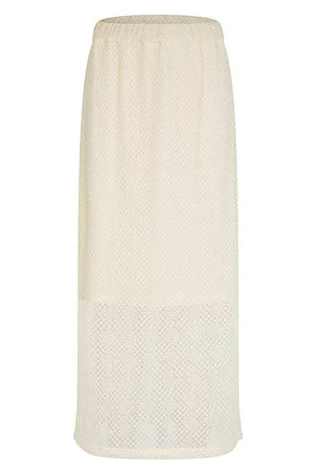 Jupe couleur crème de MbyM en tissu agréable avec motif. Elle a une taille élastique et arrive au milieu du mollet. Le tissu a un joli design texturé.
