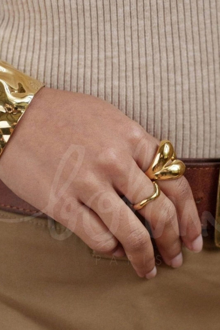 Bague dorée de Mellow Moon en acier inoxydable. La bague a une surface dorée et une forme simple qui convient aussi bien au quotidien qu'aux occasions festives.