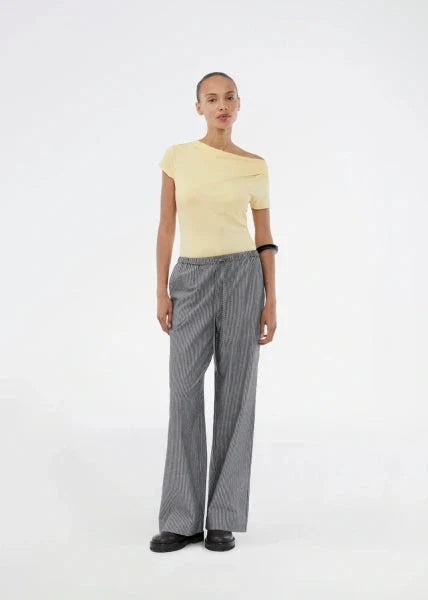T-shirt jaune Modström avec encolure drapée. Le t-shirt a des manches courtes et une coupe près du corps.