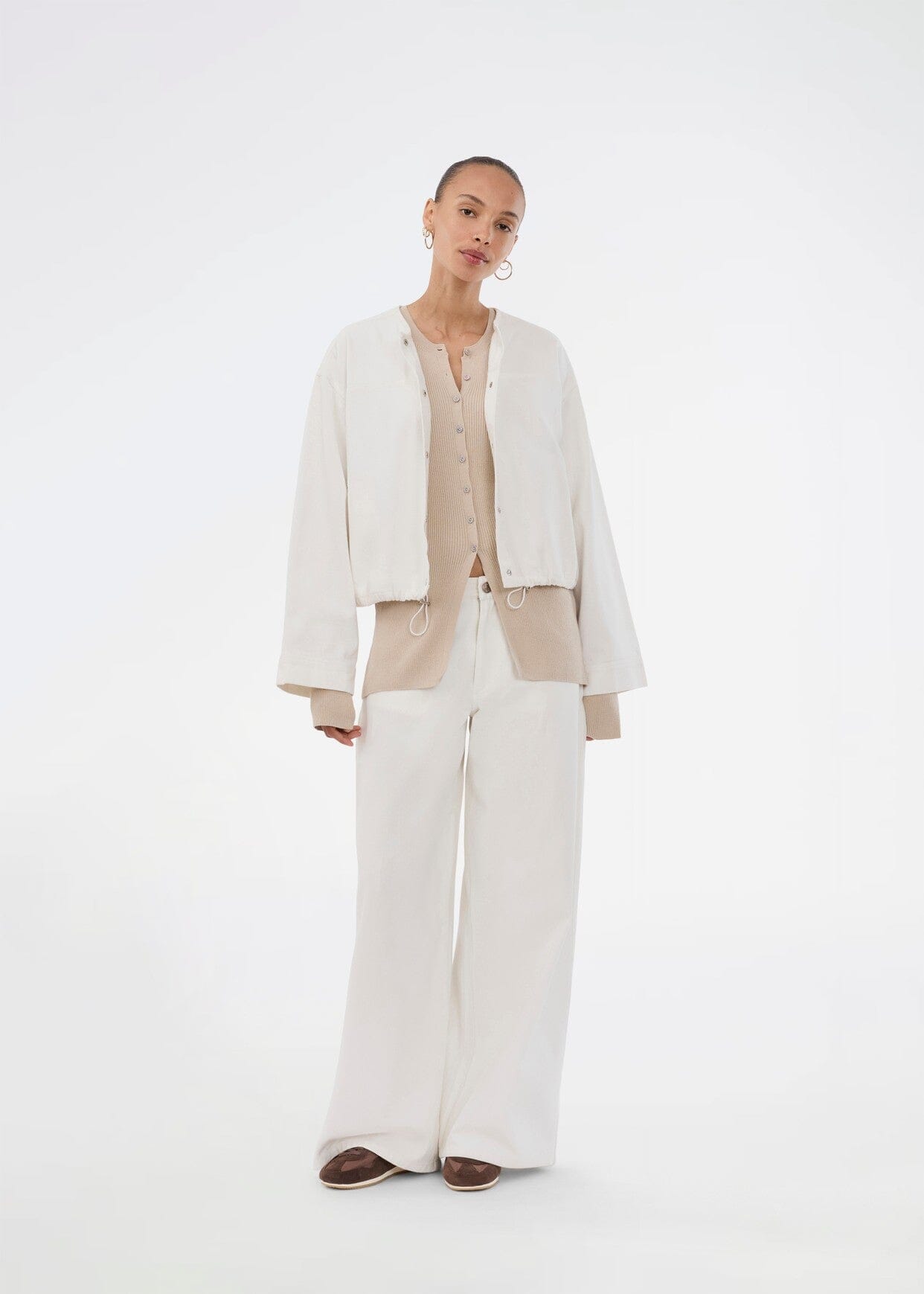 Veste courte de Modström dans une couleur crème claire. La veste présente une coupe oversize et est fabriquée en 100 % coton.