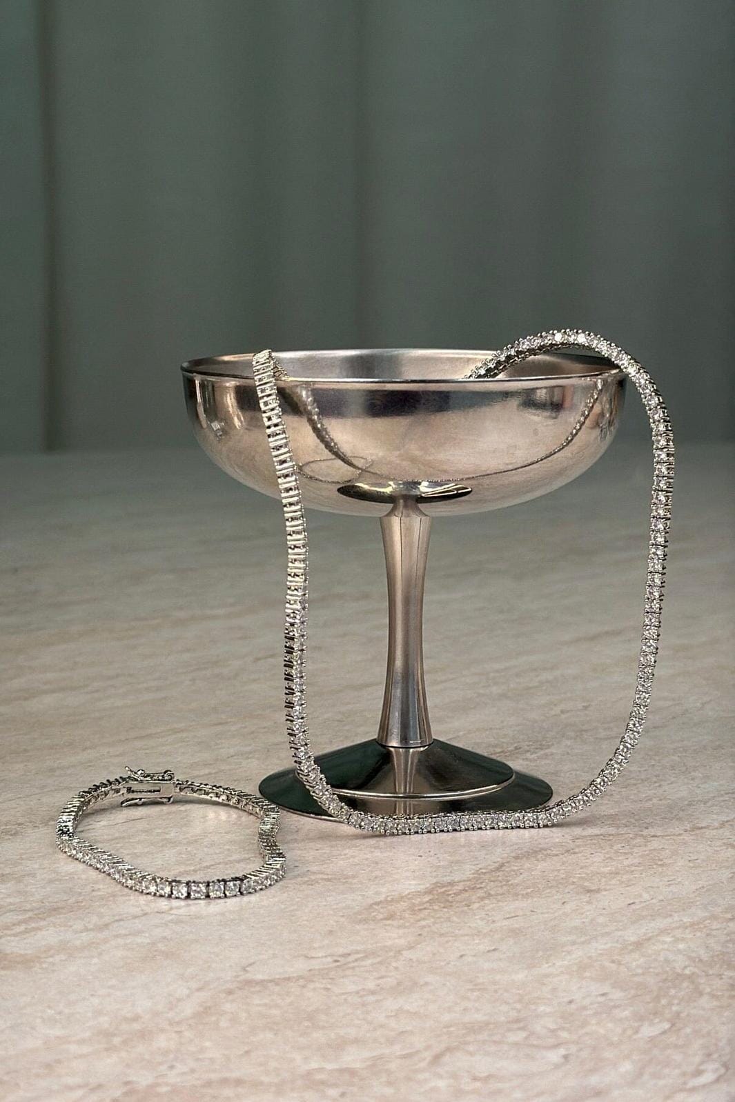 Parure de bijoux Molly&My Jewellery avec finition argentée. L’ensemble se compose d’un collier et d’un bracelet ornés de petites pierres.