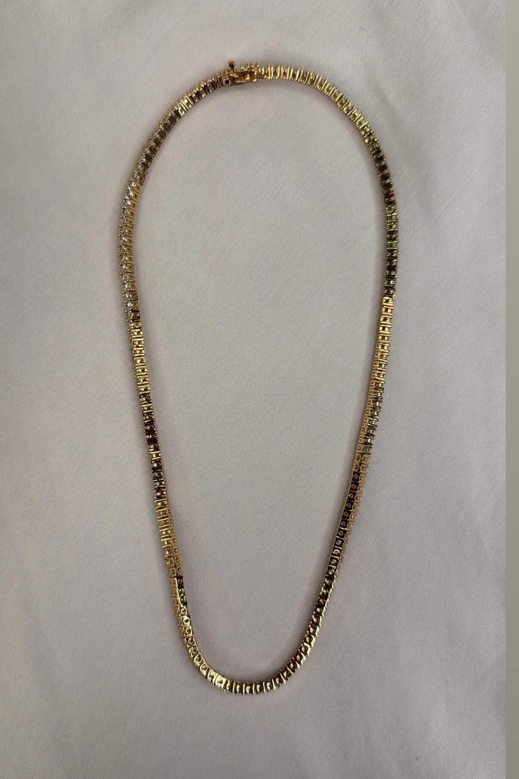 Parure de bijoux dorée de Molly&My Jewellery avec des pierres claires sur toute la longueur. L’ensemble se compose d’un collier et d’un bracelet avec une finition dorée.