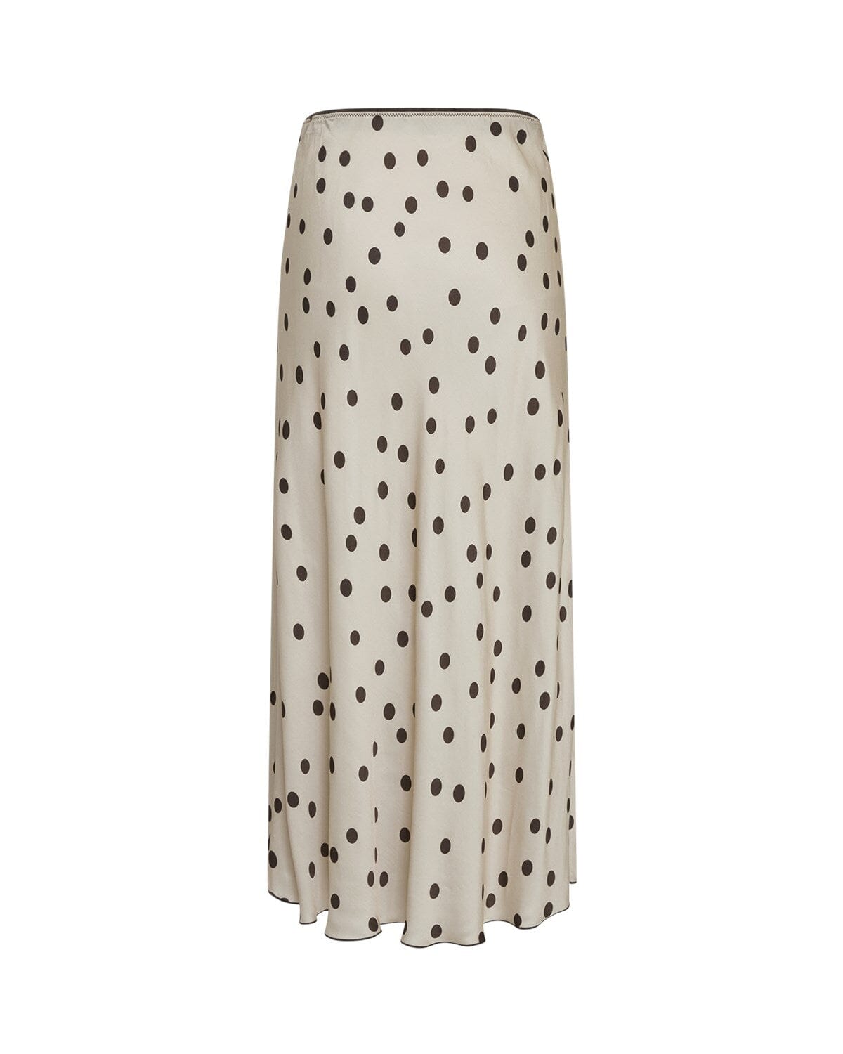 Jupe longue de MSCH Copenhagen en viscose beige à pois foncés. La jupe présente une silhouette fluide et une taille élastique.