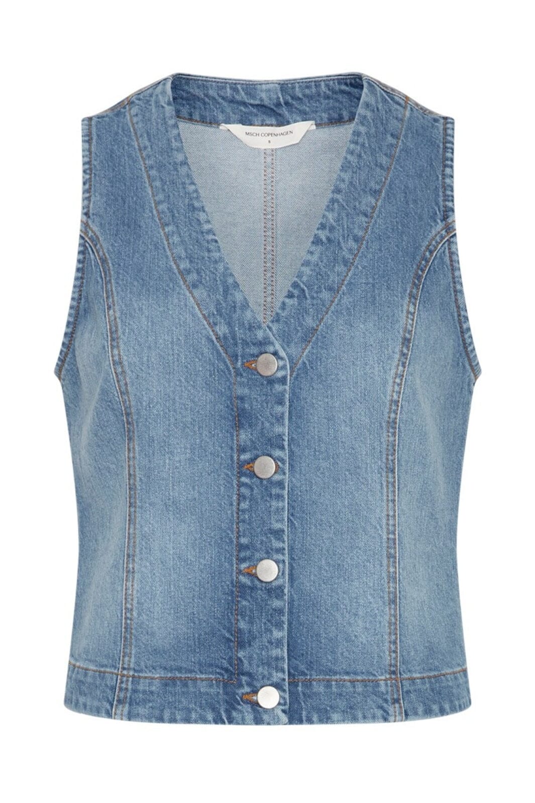 Moss Copenhagen Mscheli Ada Denim Vest Couleur: Mid Blue Wash
