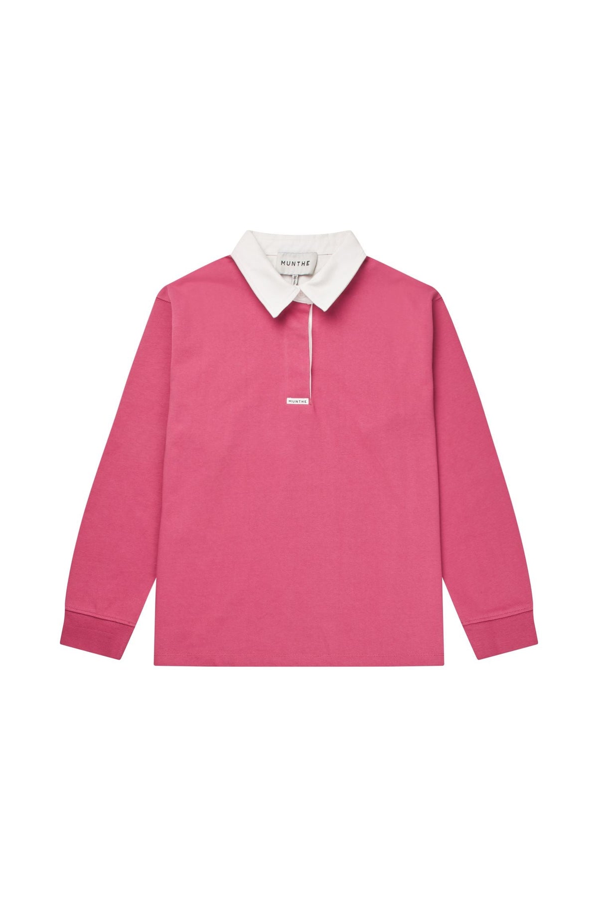 Polo à manches longues de Munthe dans une couleur baie rose-violet. Le polo présente des détails blancs au col et aux poignets.