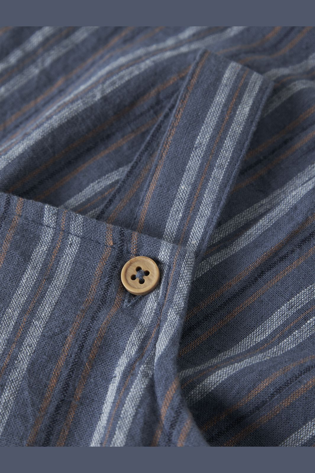 Une salopette de Name It à rayures bleues et bleu foncé. Le tissu est un mélange de coton et de lin, ce qui donne une matière légère et douce.