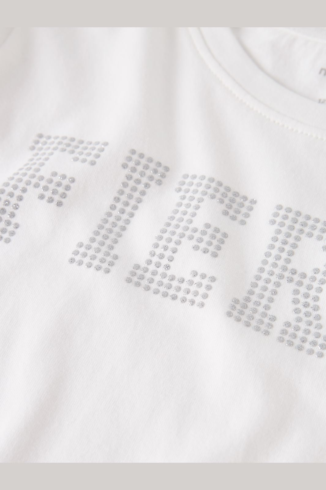 Haut à manches longues de Name It dans une teinte blanche. Le haut est fabriqué en 100 % coton biologique et présente un imprimé pailleté sur le devant.
