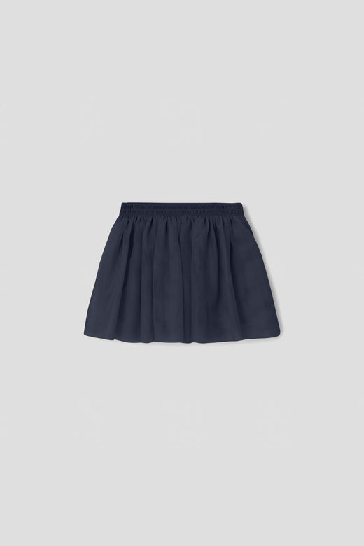 Jupe bleu foncé de Name It, fabriquée en polyester 100 % recyclé avec une structure en tulle semblable à un filet. La jupe est de longueur genou et présente une coupe froncée avec du volume.