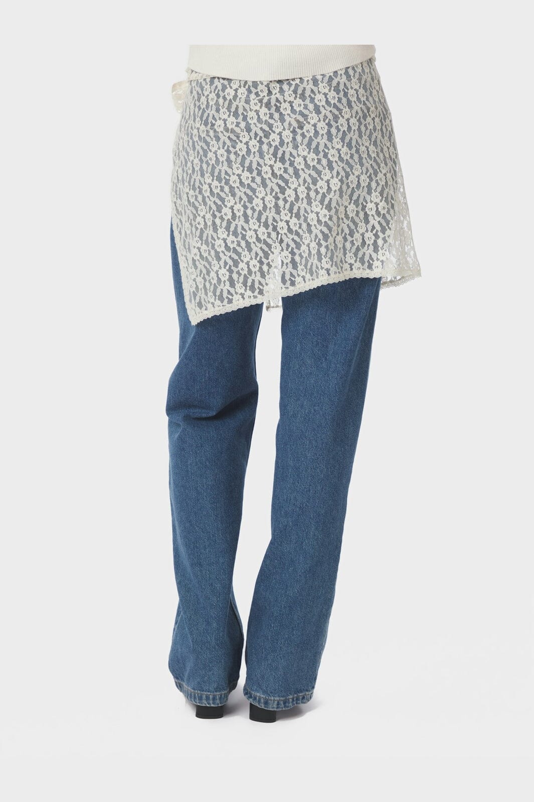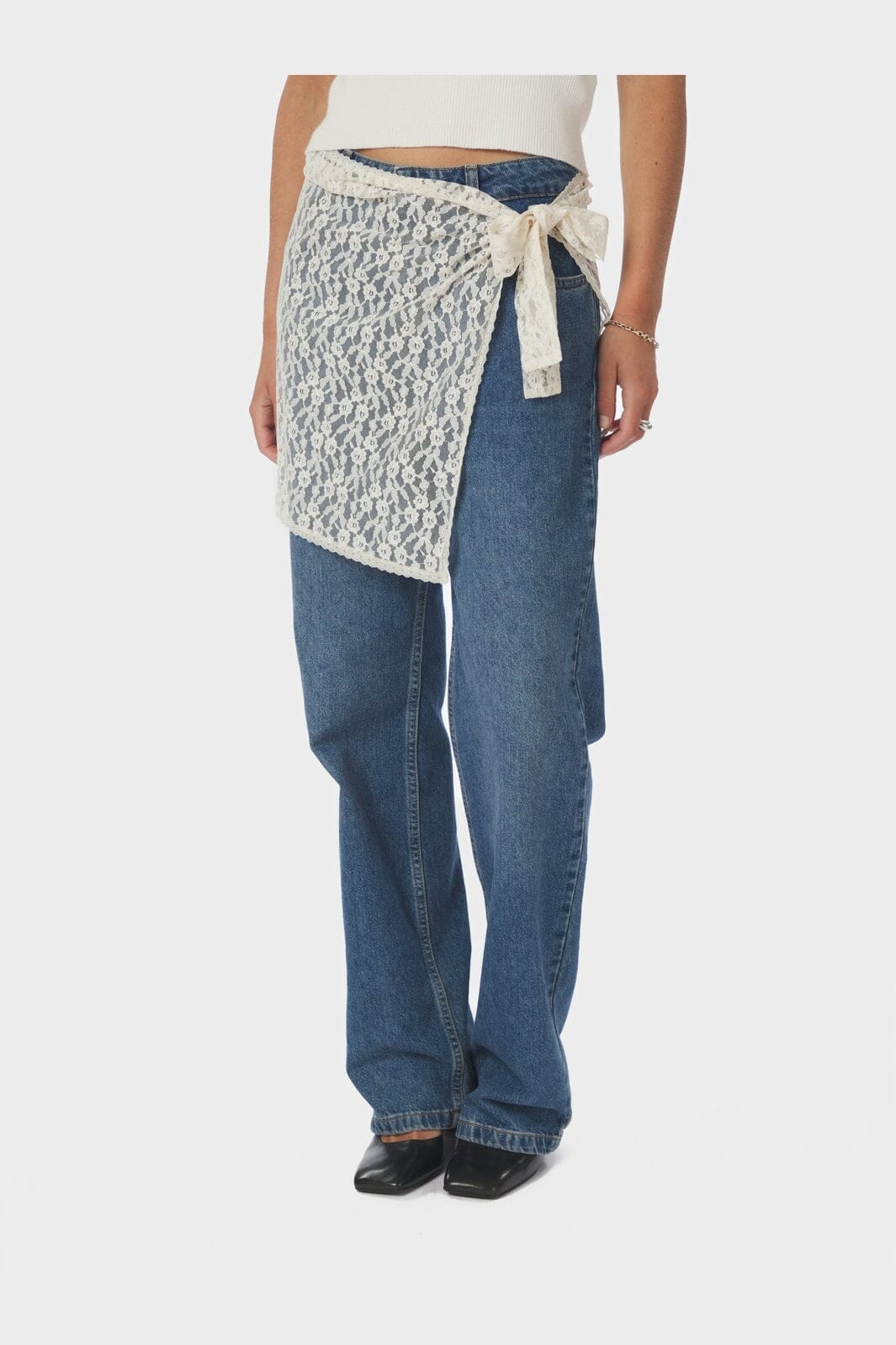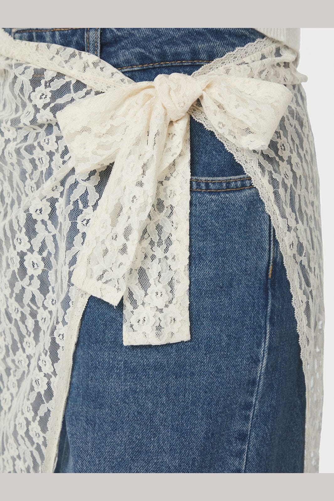 Jupe portefeuille de Neo Noir en dentelle crème. La jupe a un motif floral et se noue sur le côté.