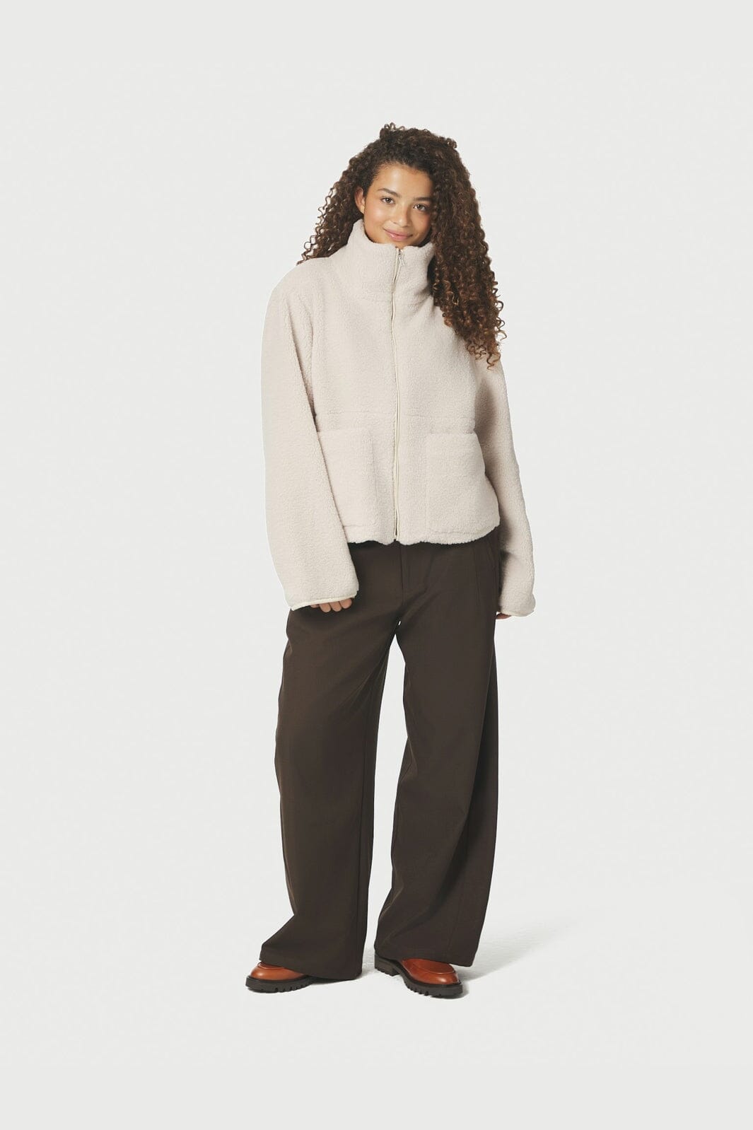 Veste teddy de Neo Noir dans une douce teinte ivoire. La veste possède un col montant et une coupe ample, adaptée aussi bien à la maison qu’au quotidien.