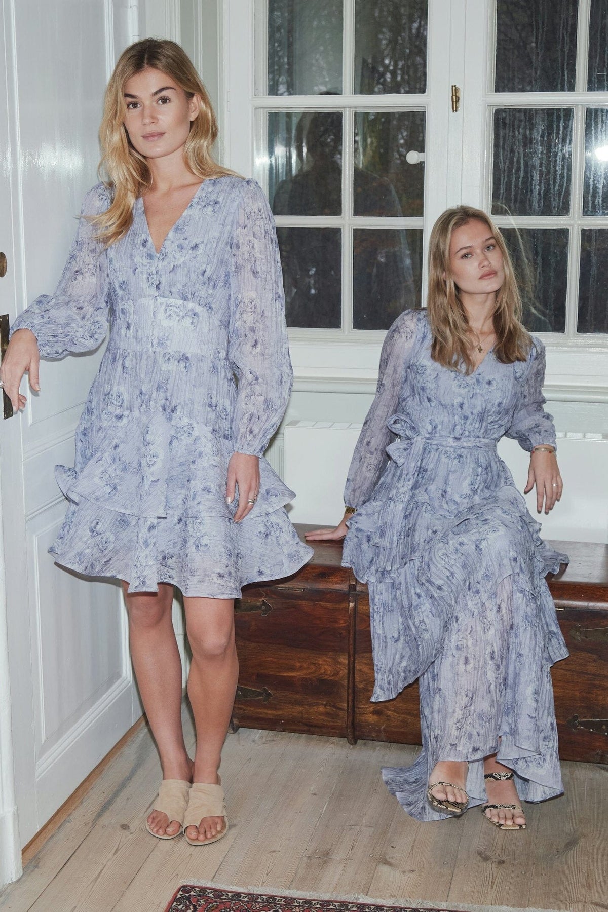 Robe Neo Noir à imprimé fleuri bleu clair. Avec ses volants et son décolleté en V, la robe convient aussi bien au quotidien qu’aux occasions festives et aux mariages.