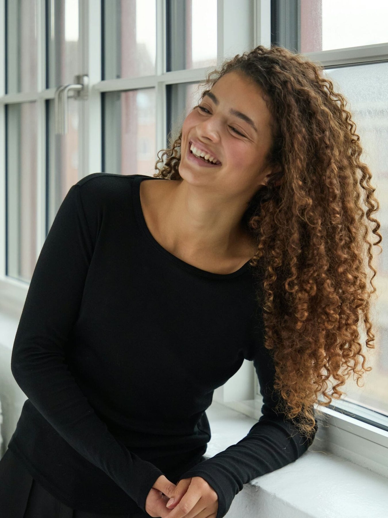 Blouse en rib noir de Neo Noir en un doux mélange de lyocell et de laine. La blouse a une coupe ajustée avec des manches longues et un col rond.