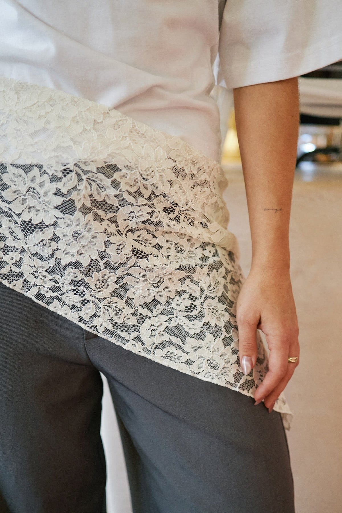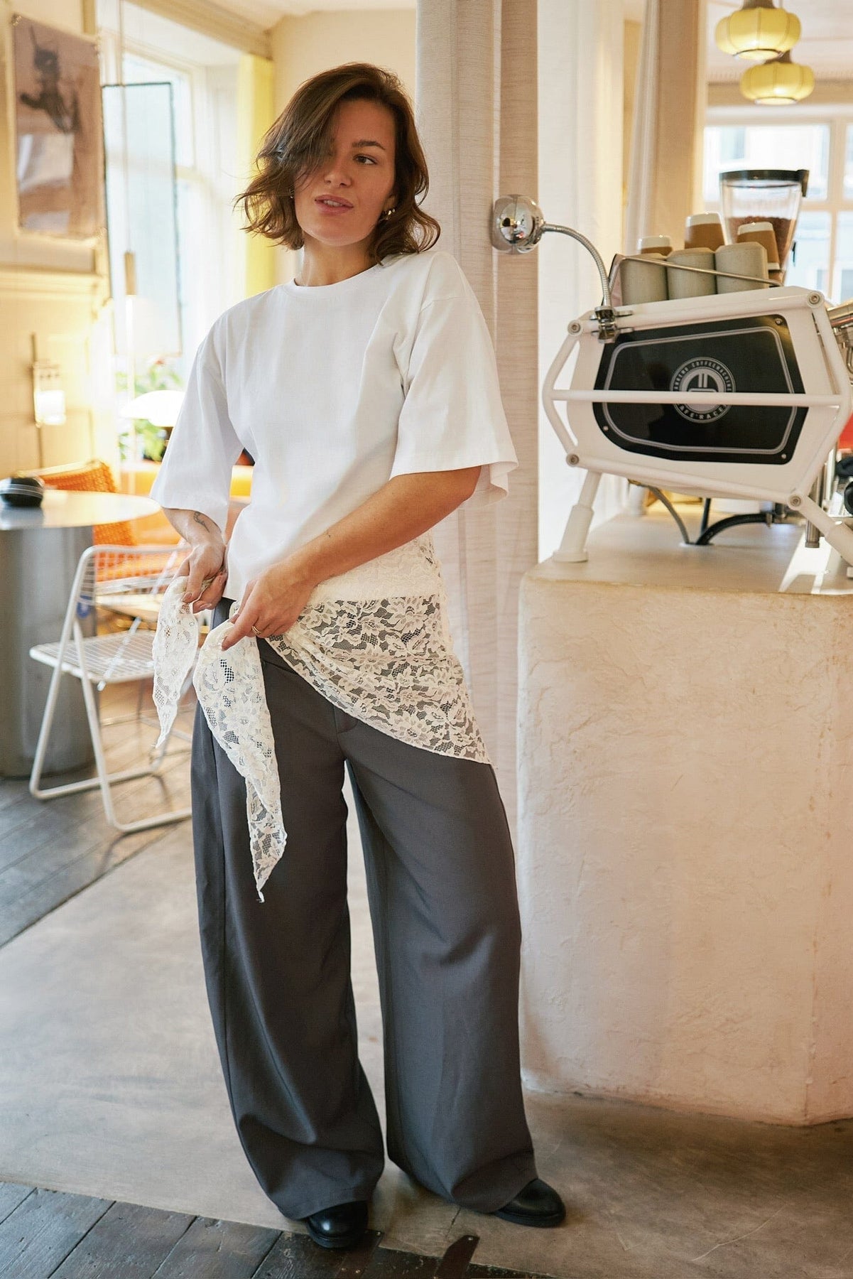 Foulard en dentelle de Neo Noir couleur crème. Confectionné en dentelle à motif fleuri, il peut être noué de différentes manières.