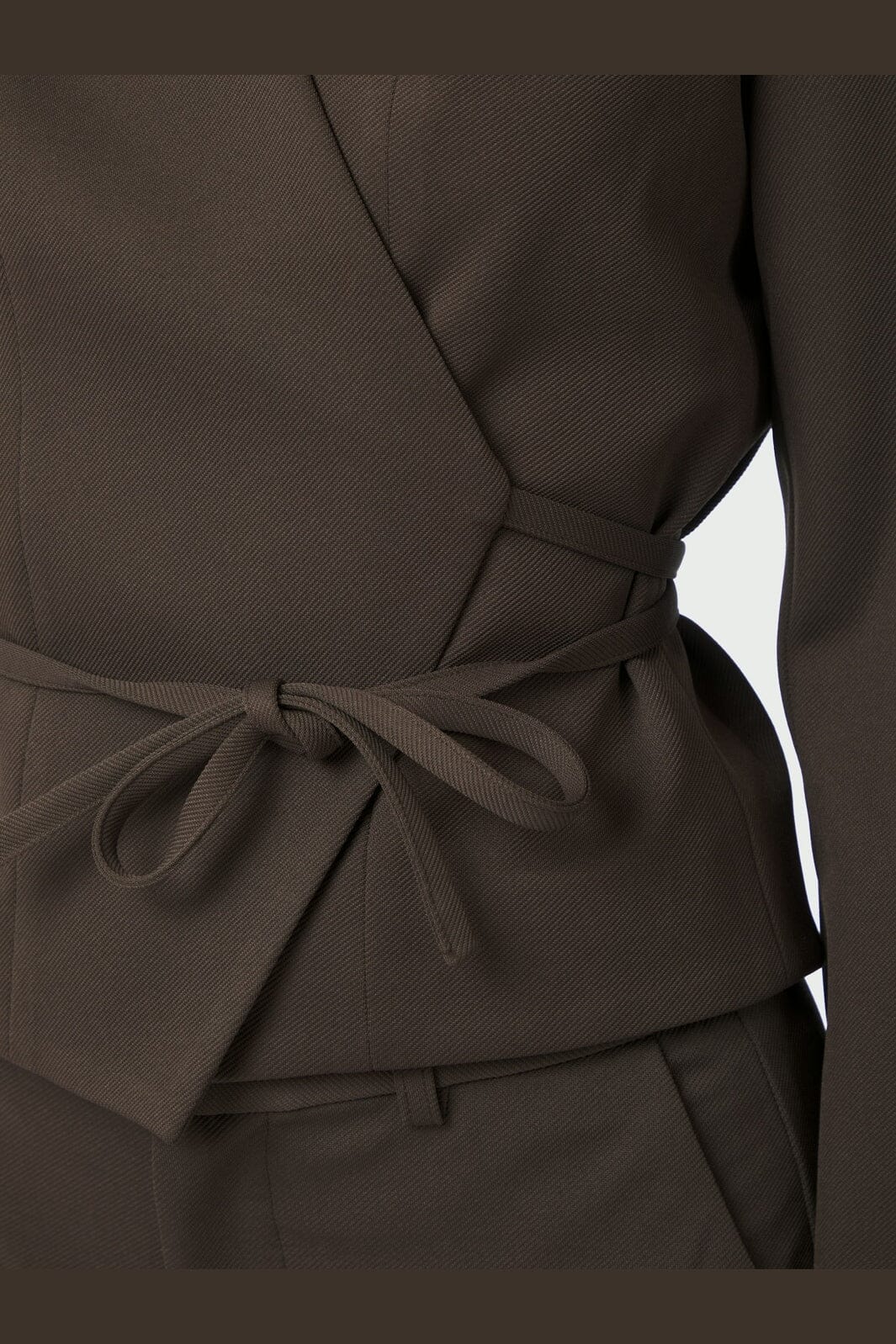 Blouse marron foncé de Neo Noir avec design croisé. La blouse a un décolleté en V et des manches longues. Le lien à la taille permet d'ajuster la coupe.