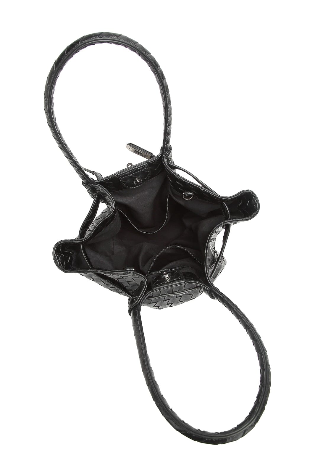Sac noir de Noella, fabriqué en 100 % polyuréthane avec un design tressé sur toute la surface. Le sac possède deux longues anses et des détails en argent brossé.