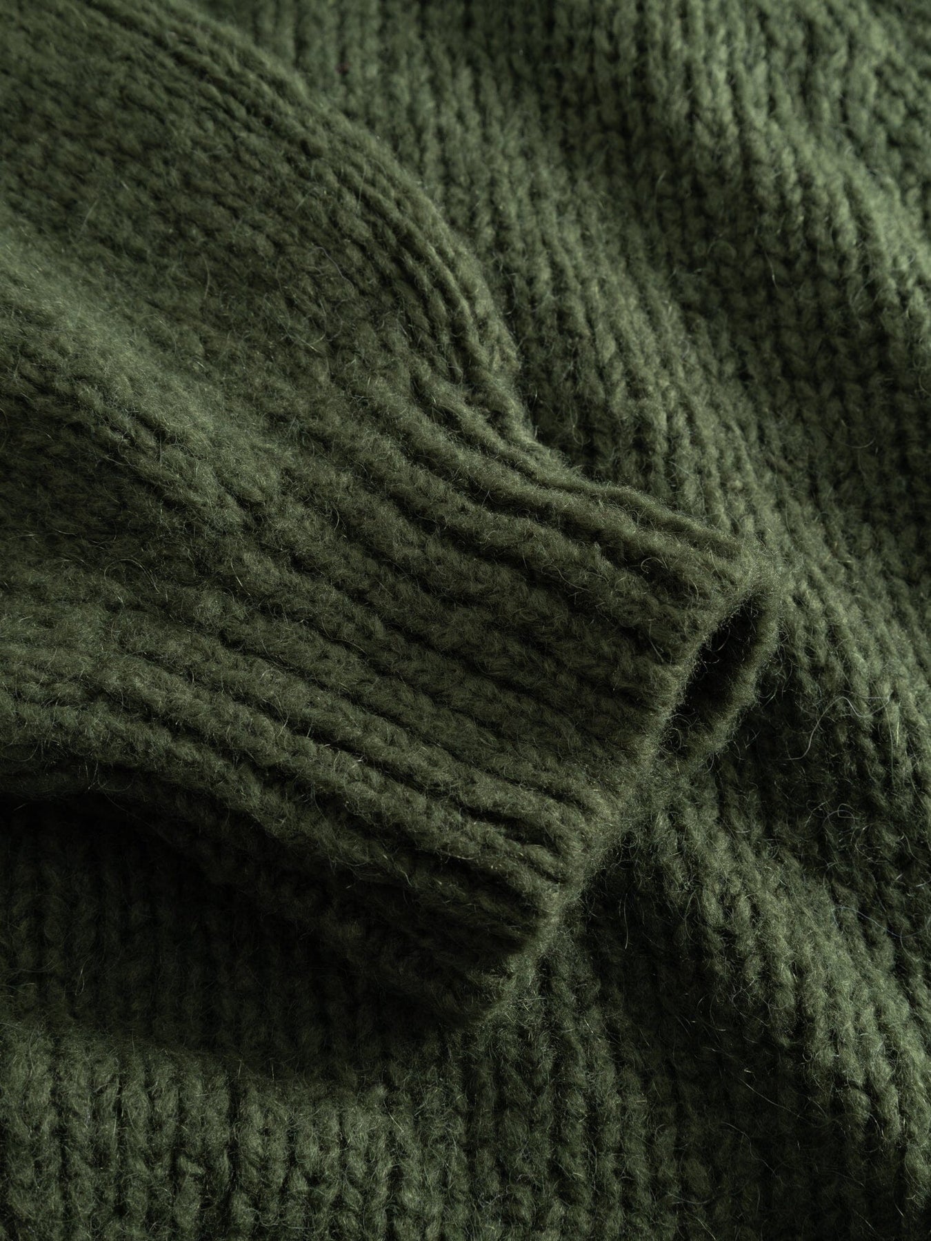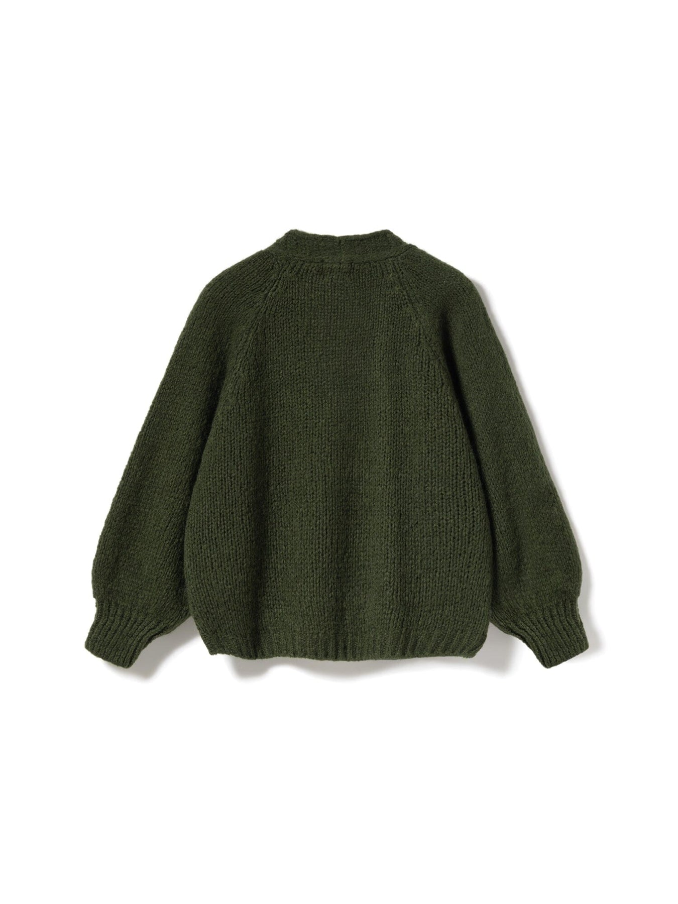Cardigan tricoté de Noella en vert foncé. Il a une coupe ample avec des manches bouffantes et une ouverture à l'avant, tricoté dans un mélange d'acrylique, de laine, de nylon et de mohair.