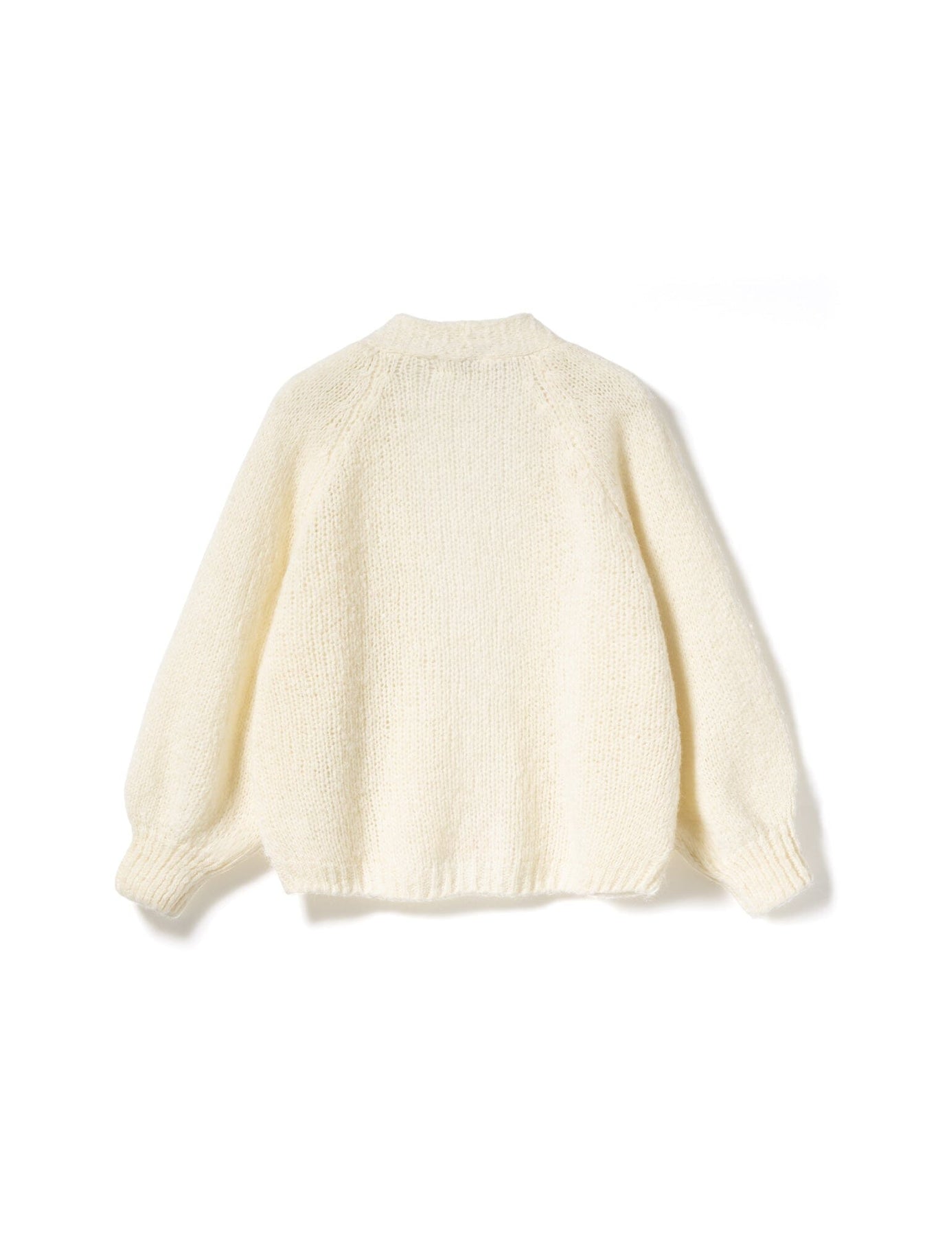 Cardigan en tricot blanc de Noella avec col rond et manches ballon. La nuance crème et la texture tricotée donnent au cardigan une allure douce et décontractée.