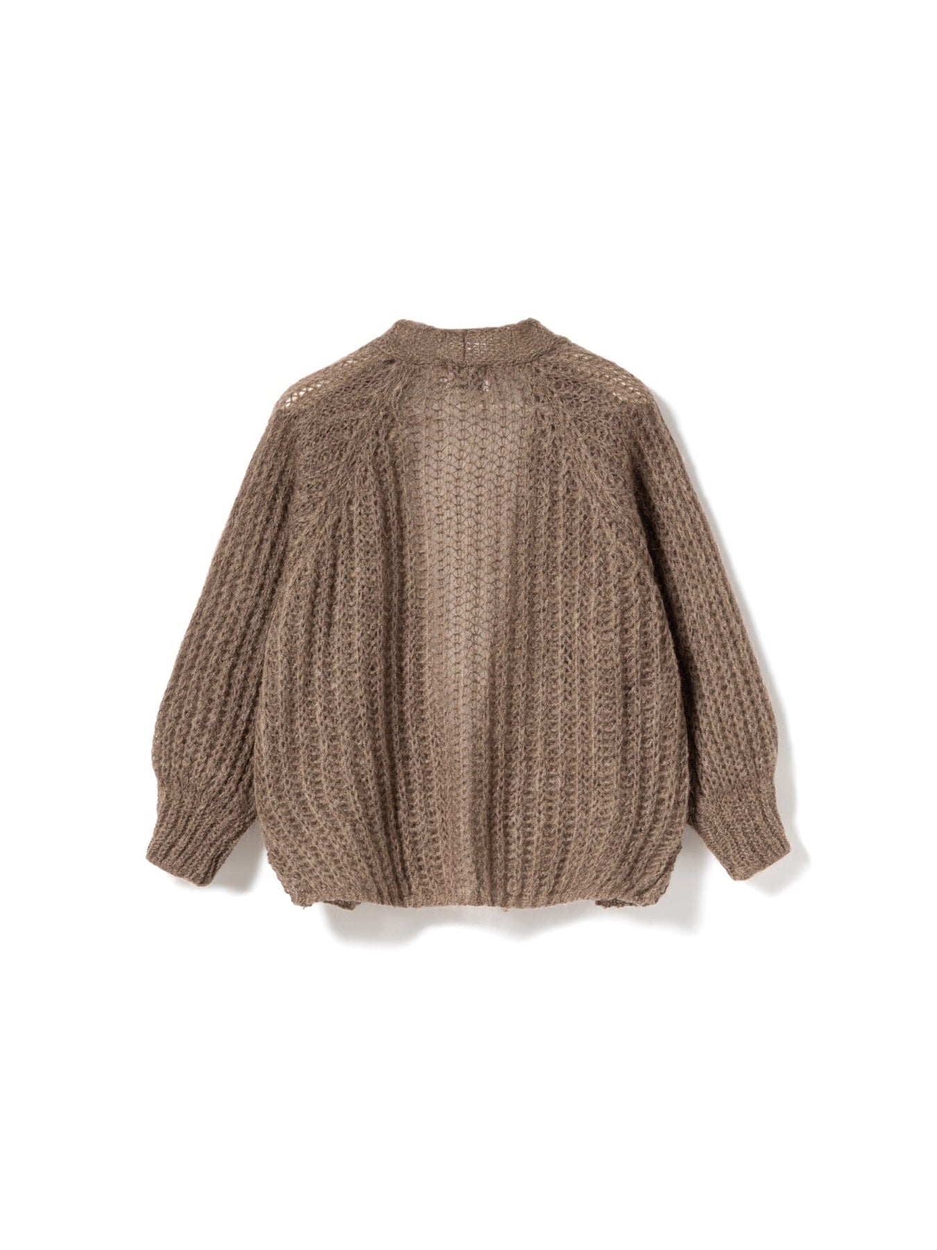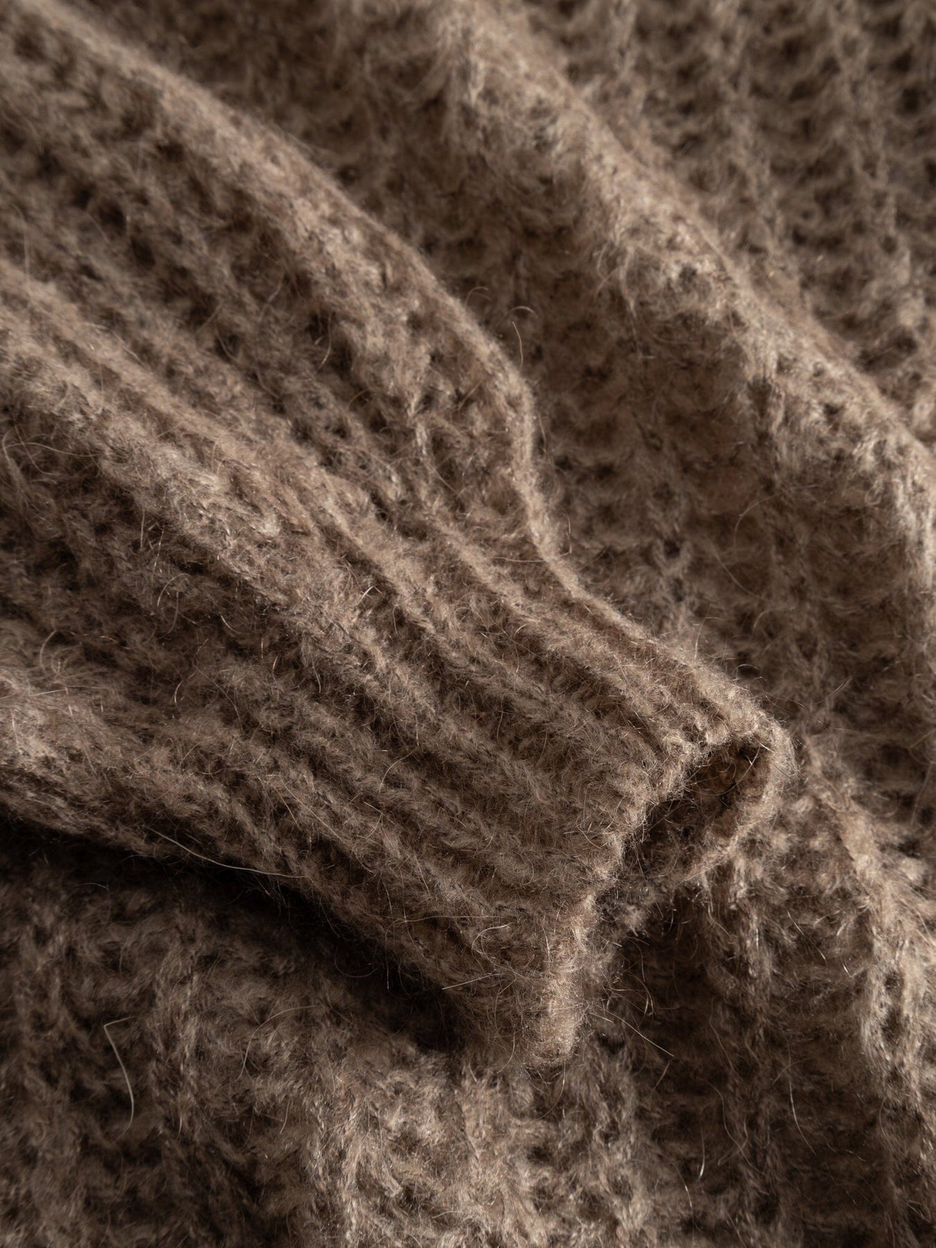 Cardigan brun de Noella avec une coupe ample et des manches longues. Tricoté dans un mélange doux de mohair, d'acrylique et de nylon avec une structure aérée.
