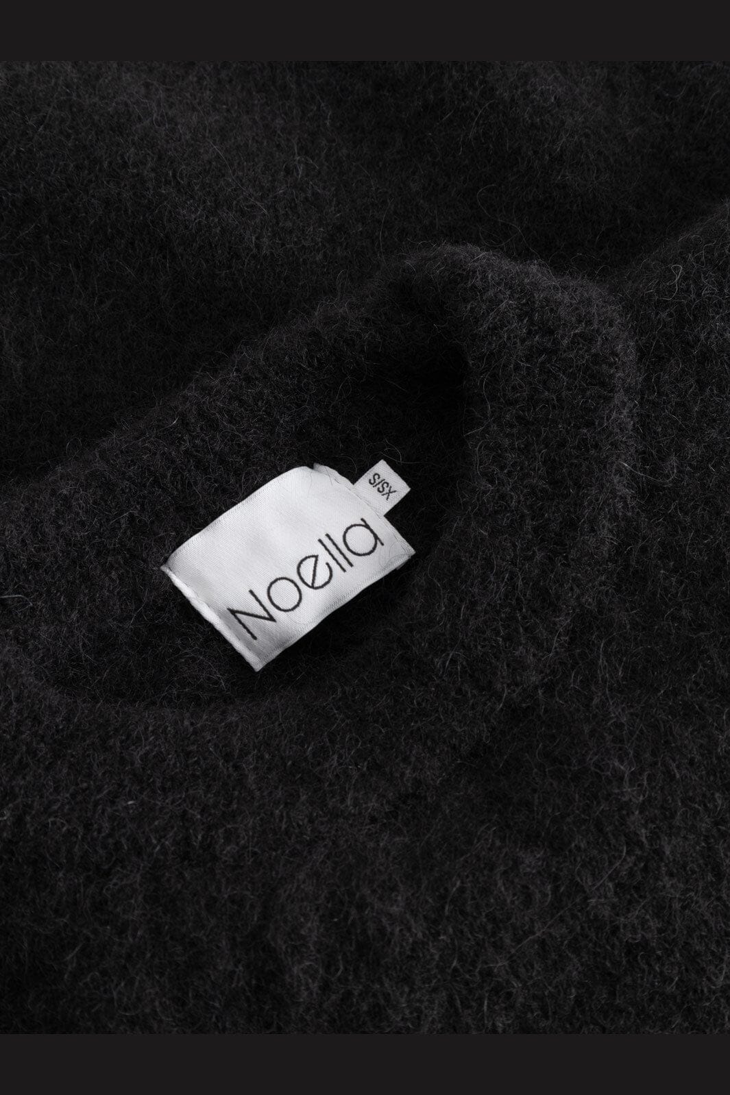 Pull noir en tricot de Noella avec une surface douce et duveteuse. Conçu avec des manches bouffantes et une longueur cropped pour un style moderne.