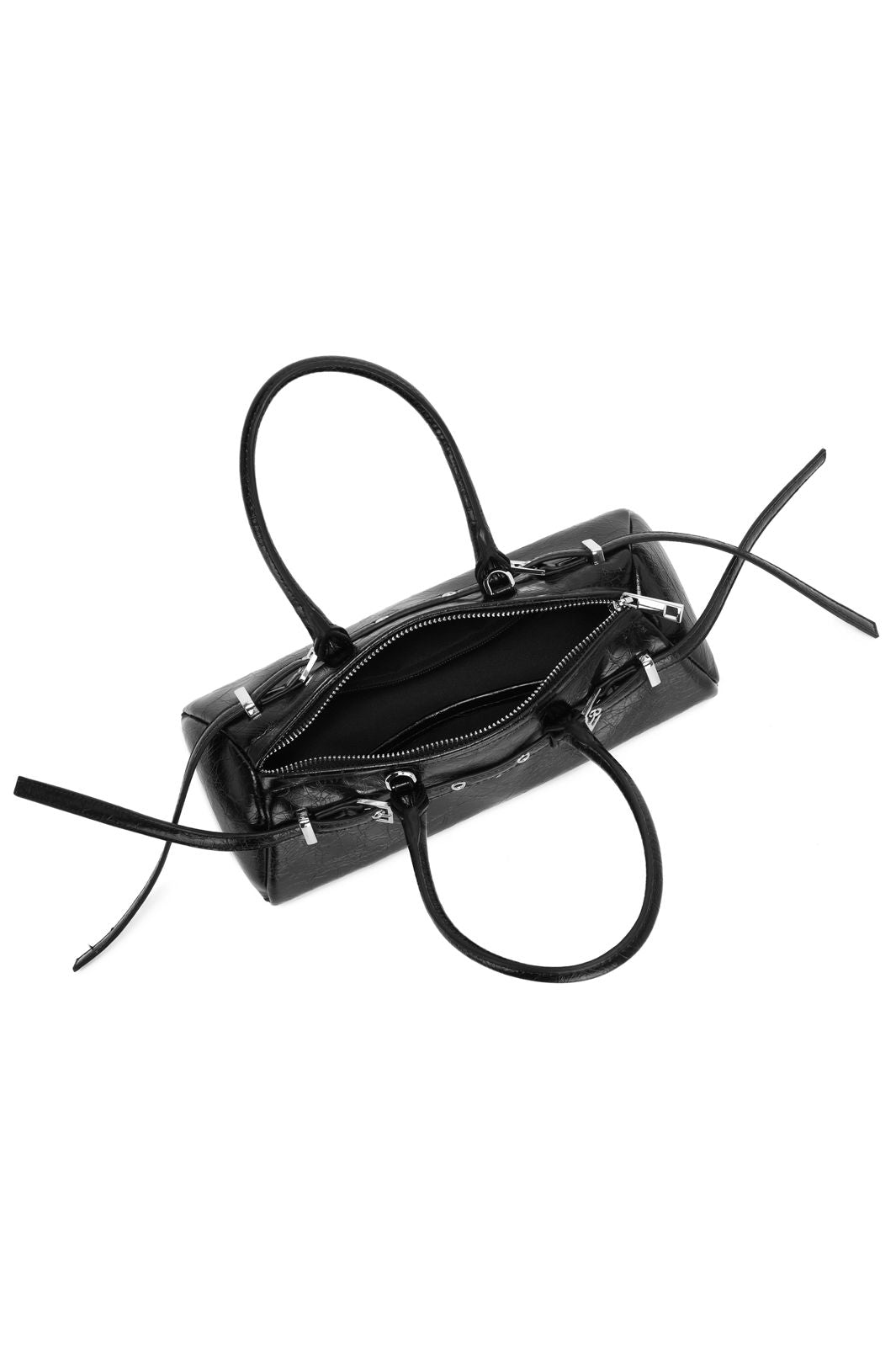 Sac noir de Noella avec aspect cuir et patine. Le sac possède deux petites anses et une bandoulière amovible.