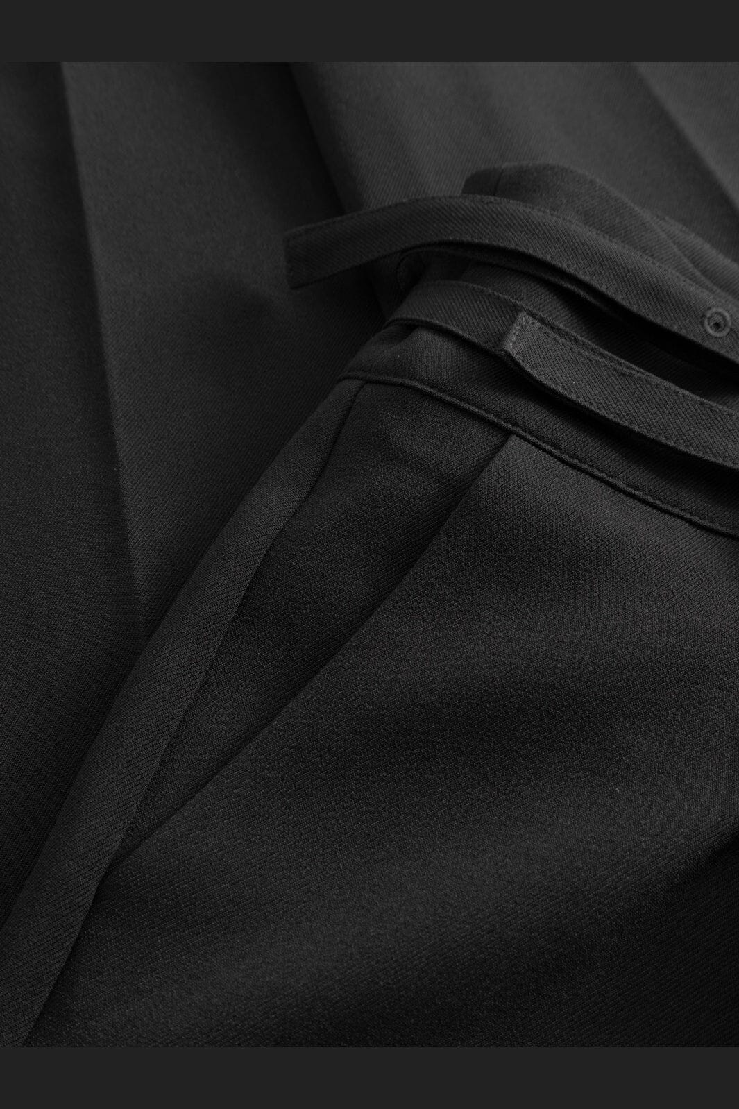 Pantalon noir de Noella avec doubles passants de ceinture avec boucles et détails de boutons sur les poches arrière. Le pantalon a une taille haute et une coupe ample.