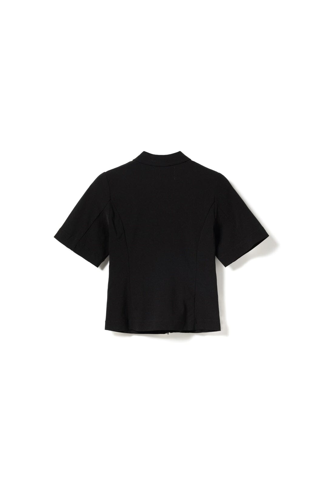 Blazer noir à manches courtes de Noella. Le blazer présente une coupe slim avec un col classique et un zip bidirectionnel sur le devant.