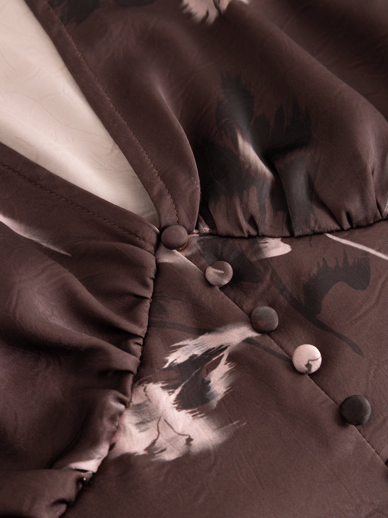 Blouse de Noella avec imprimé floral dans des nuances bordeaux et rose clair. La blouse convient aussi bien pour des journées décontractées que pour des occasions festives.
