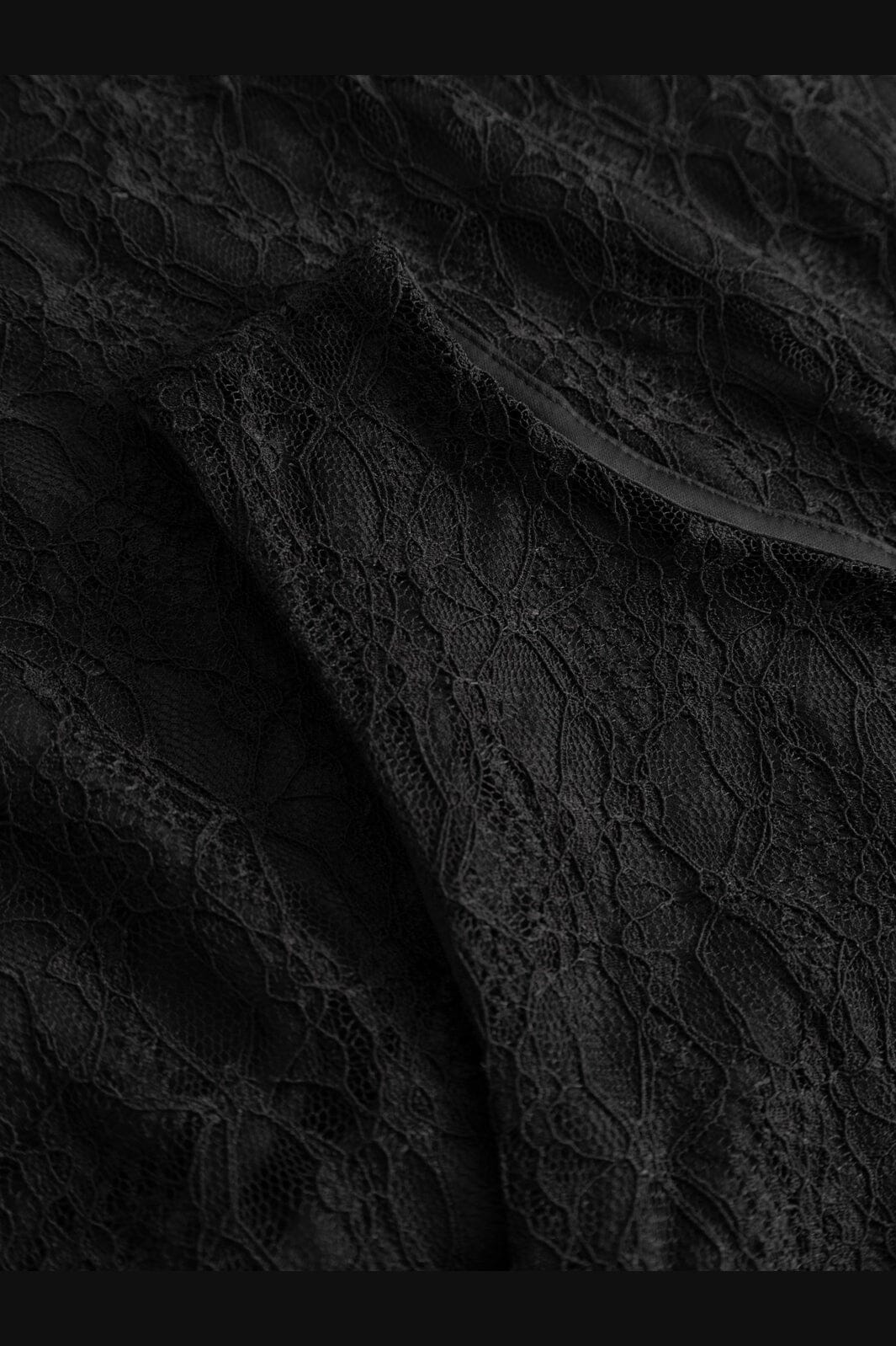 Robe noire en dentelle de Noella. La robe convient aux mariages, aux fêtes et aux occasions formelles grâce à son design off-shoulder et sa coupe asymétrique.