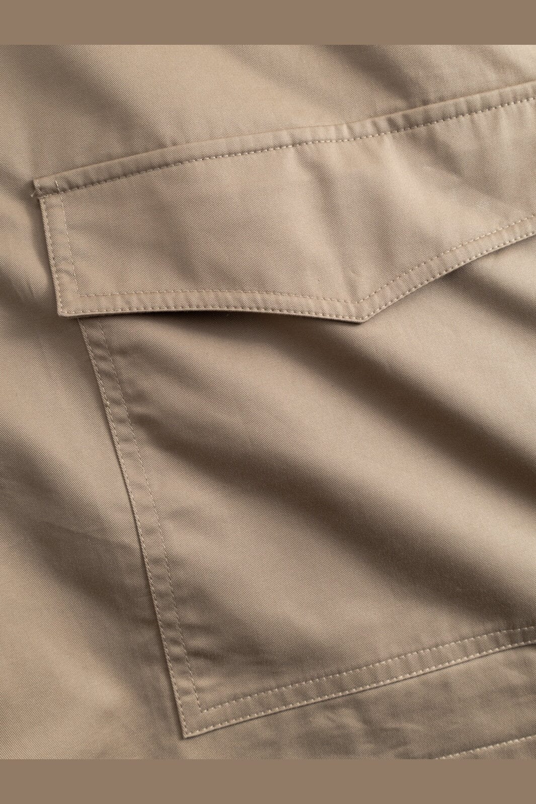 Veste Noella dans une couleur sable grisé. La veste est fabriquée en 100 % coton et présente une coupe ample avec épaules tombantes.