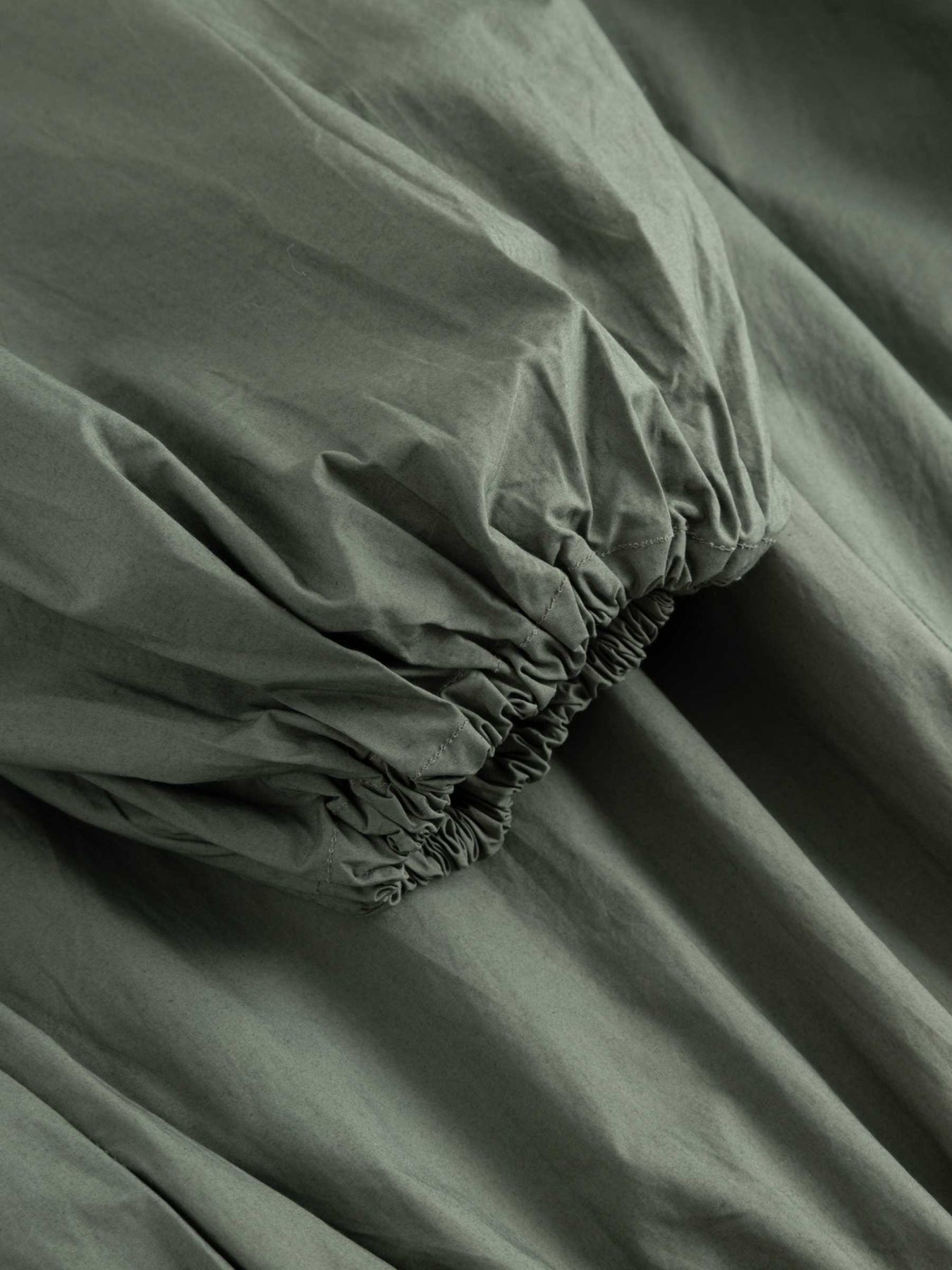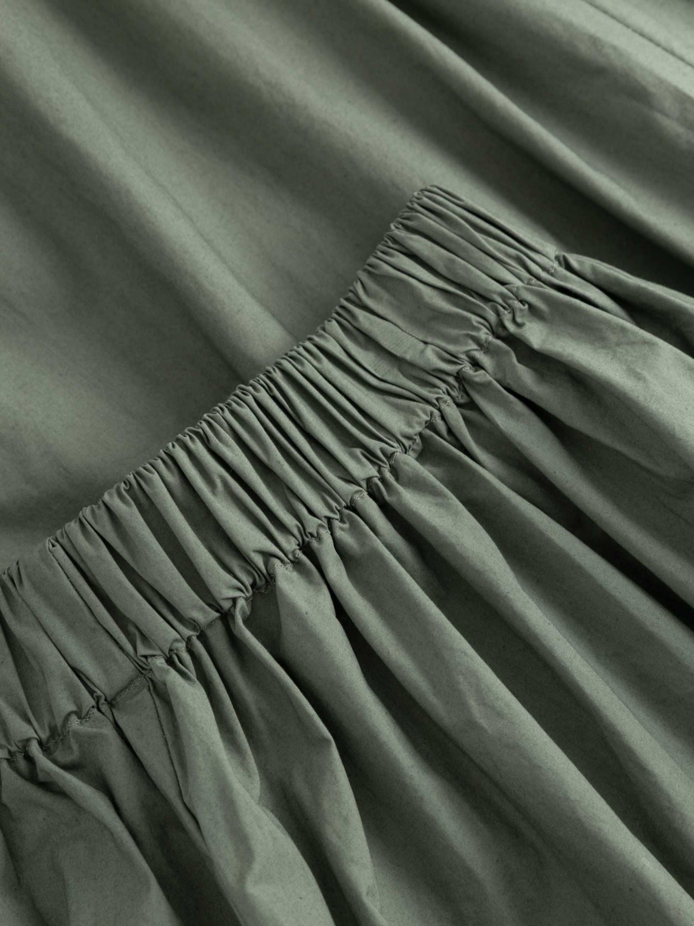 Pantalon vert de Noella, fabriqué en 100 % coton. Le pantalon a une taille haute, une coupe ample et un élastique aux chevilles.