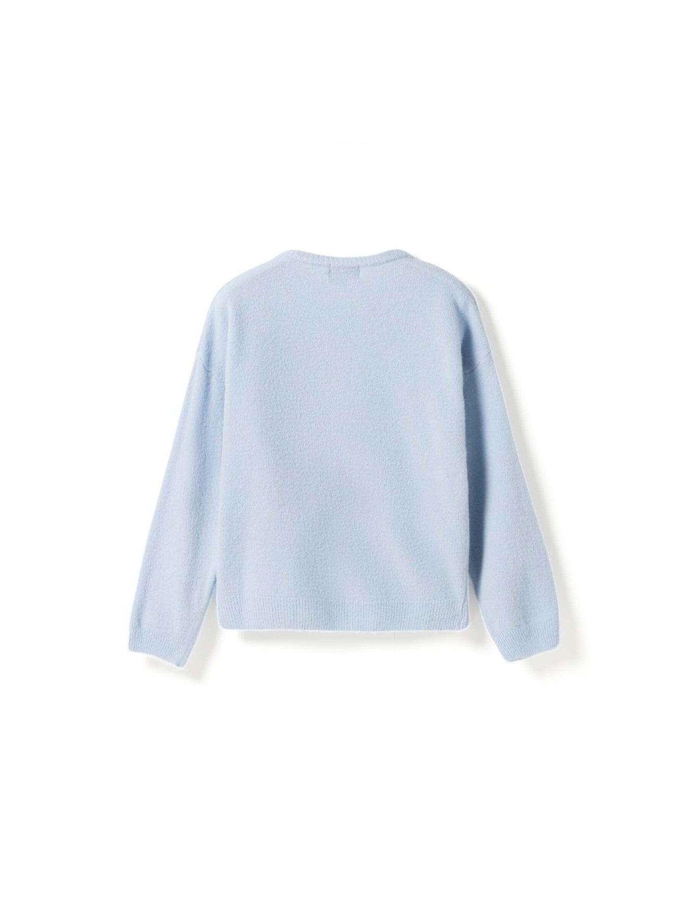 Cardigan tricoté bleu clair de Noella avec fermeture à boutons. Elle présente une coupe ample et une encolure ronde, et convient aux occasions décontractées.