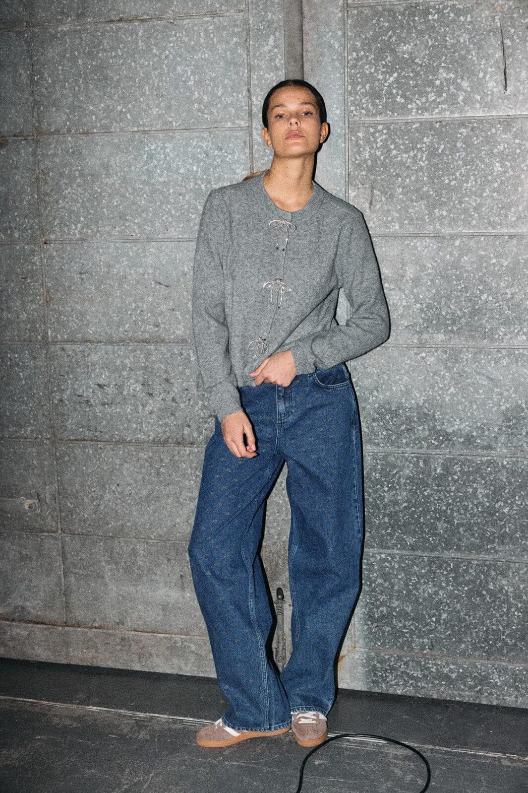 Noisy May Nmbrayana L/S Bow Trim Knit Cardigan Couleur: 4903272 Ultimate Grey Sequin Bow