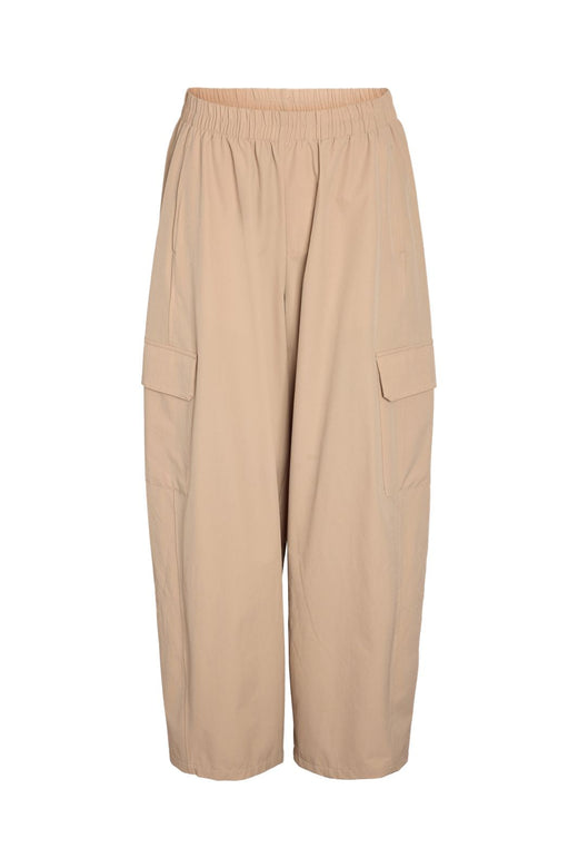 Pantalon beige de Noisy May avec une coupe ample. Le pantalon possède une taille élastique et de grandes poches cargo sur les côtés. Il convient aux occasions décontractées.