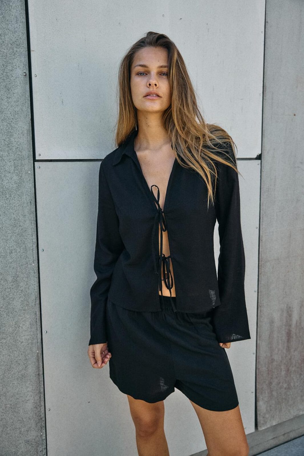 Shorts noirs de Noisy May avec taille haute et coupe ample. Les shorts sont fabriqués dans un mélange de viscose et de lin, ce qui donne une expression douce et aérée.