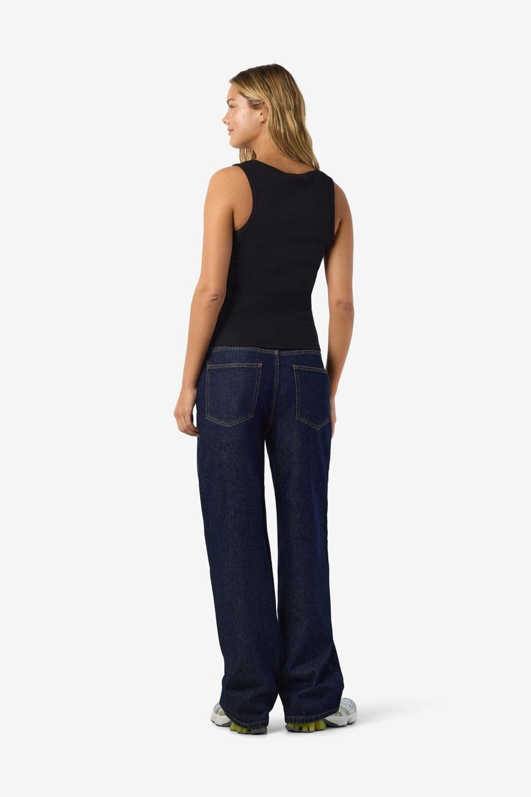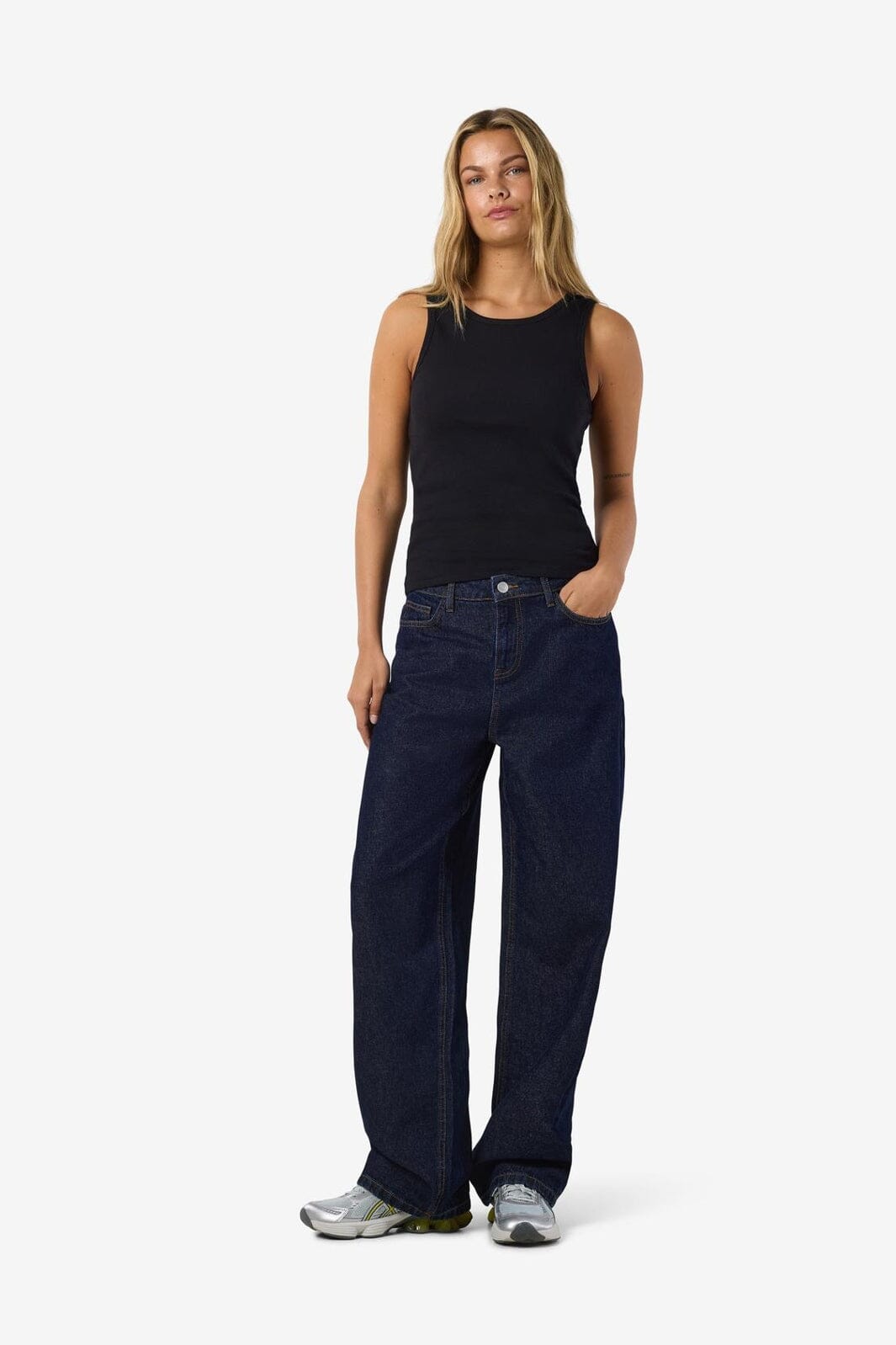 Débardeur noir de Noisy May avec col rond et larges bretelles. La coupe ajustée met en valeur les lignes du corps.