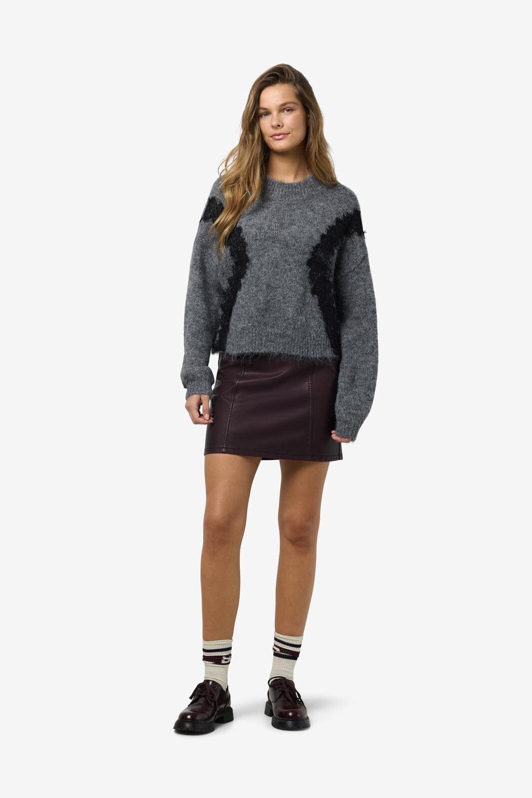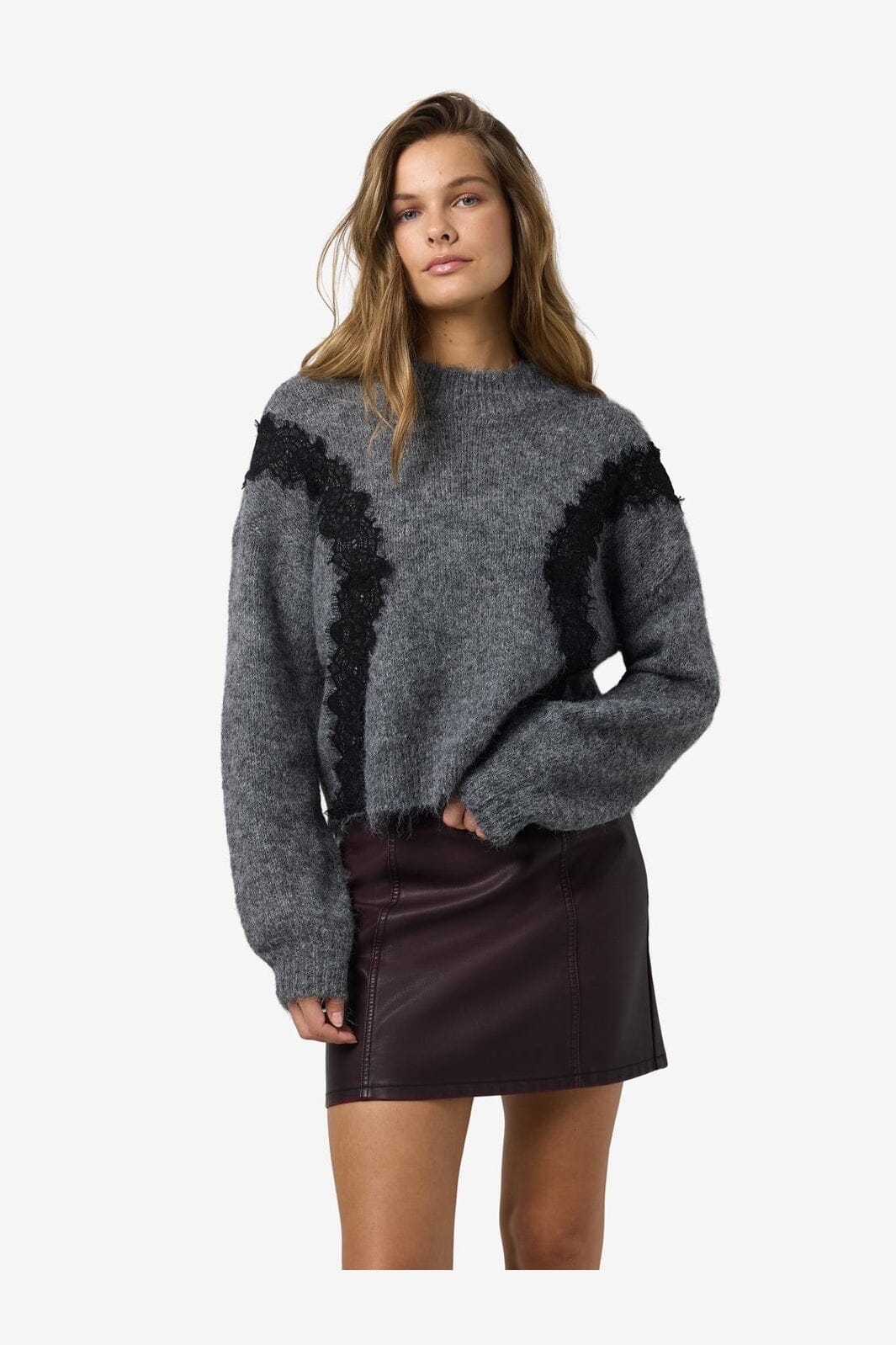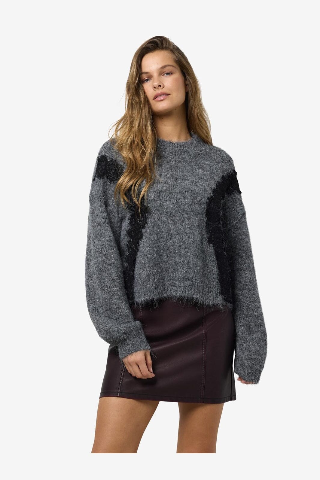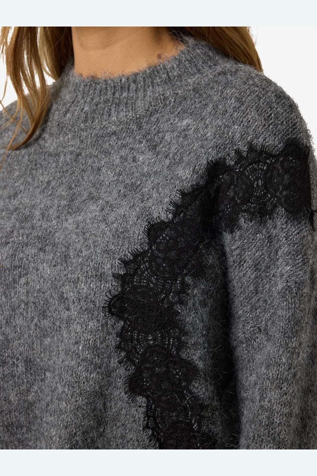 Noisy May Nmsutton L/S O-Neck Lace Knit Fwd Couleur: 4986587 Dark Grey Melange Lace