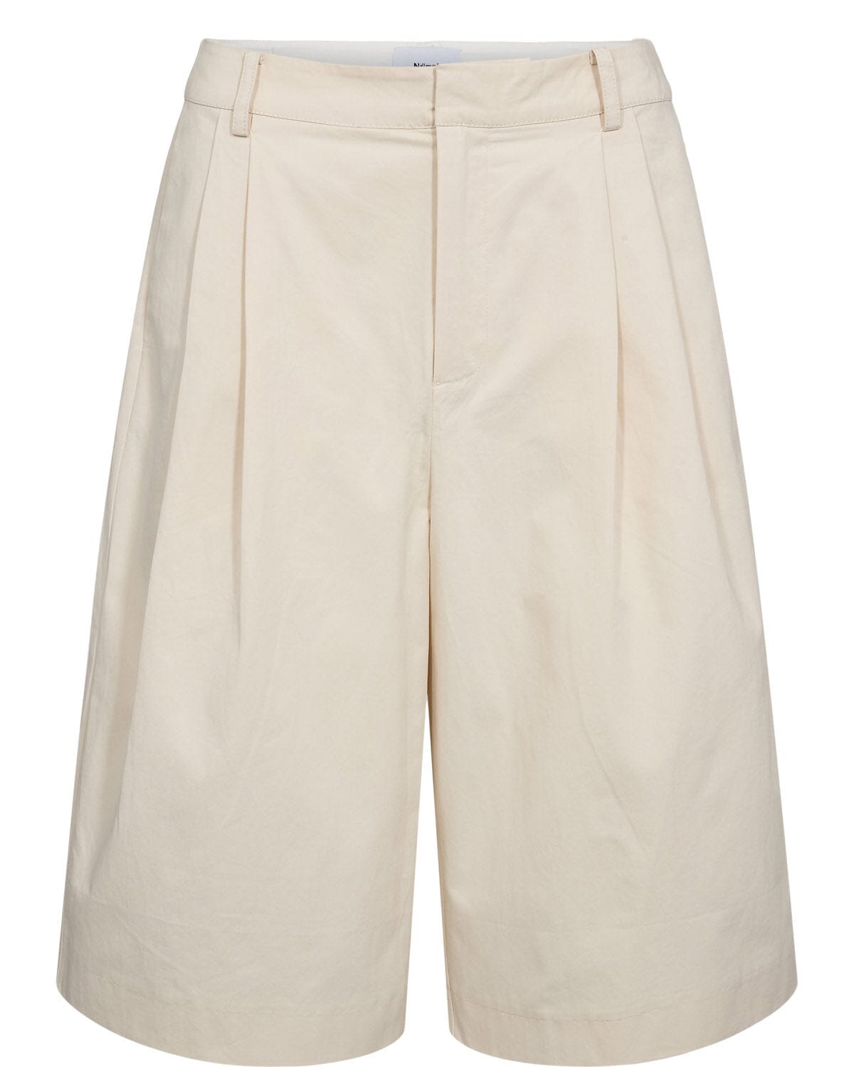 Short de Nümph en coton gris clair. La coupe ample et la longueur au genou les rendent larges au niveau des jambes et agréables à porter.