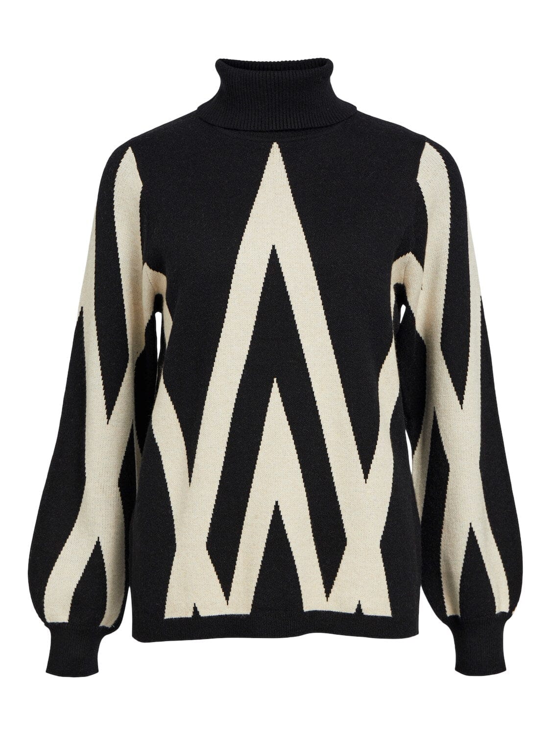 Object Objray L/S Knit Rollneck Pullover Couleur: 4415476 Black Sandshell Graphic