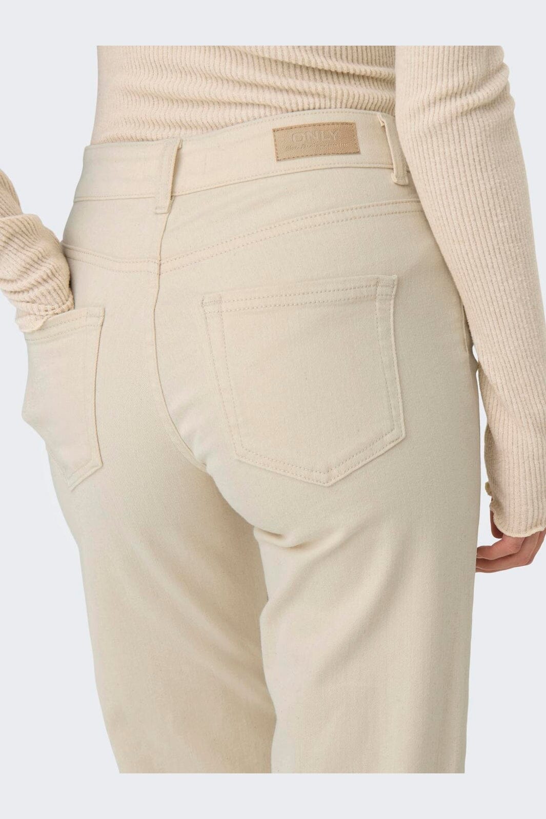 Pantalon droit de la marque Only dans une couleur blanc cassé. Le pantalon présente une coupe droite avec une taille mi-haute et une longueur cheville.