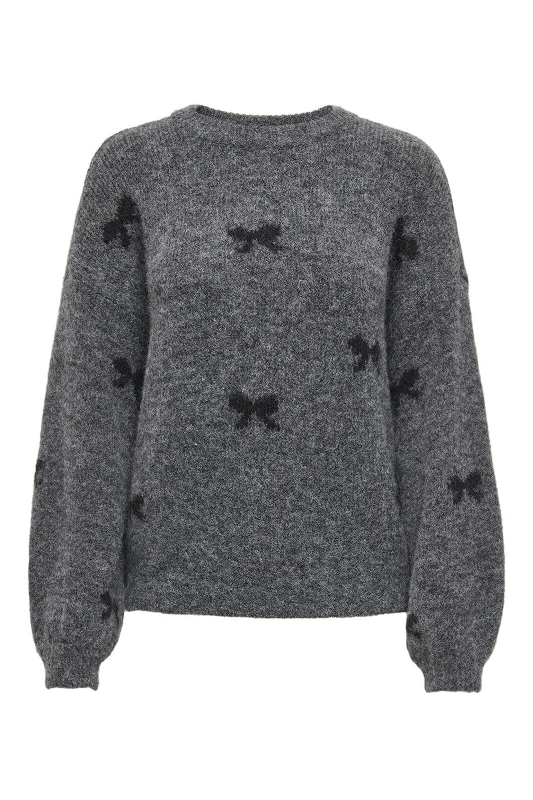 Only Onlbrunhilda Life Ls Bow O-Neck Knt Couleur: 4947221 Medium Grey Melange Black/Mini Bow