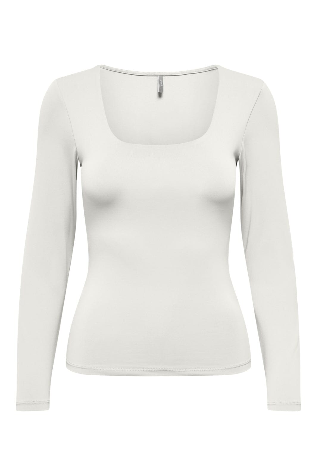 Top à manches longues de Only dans la couleur Cloud Dancer. Le top a un décolleté carré et est fabriqué dans un matériau extensible avec une coupe standard.