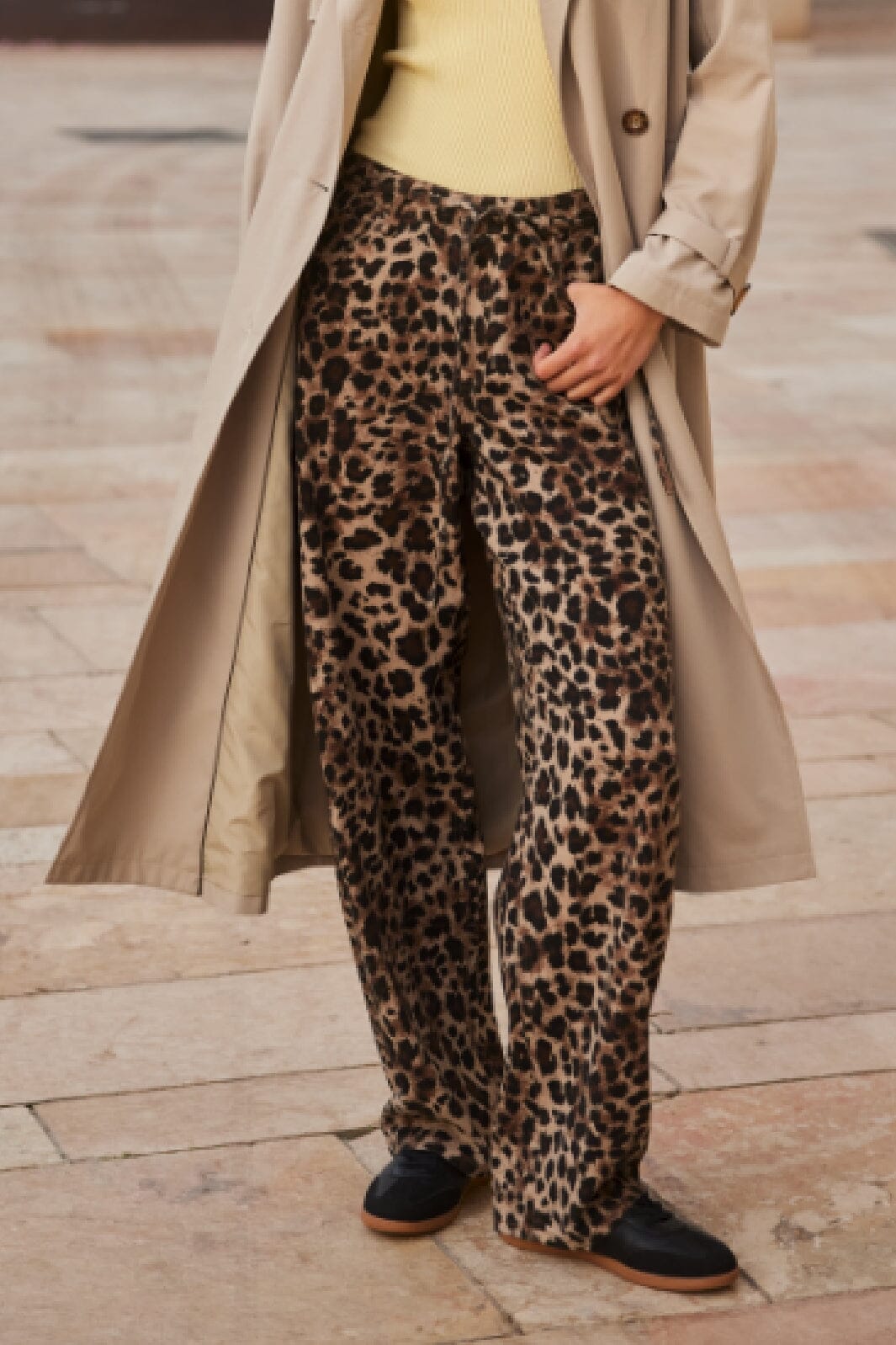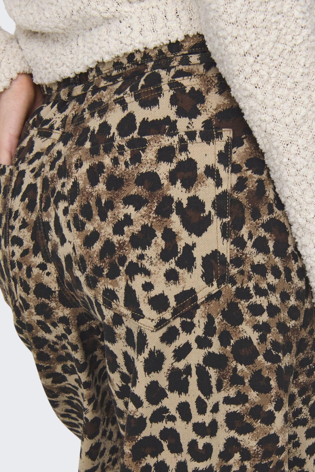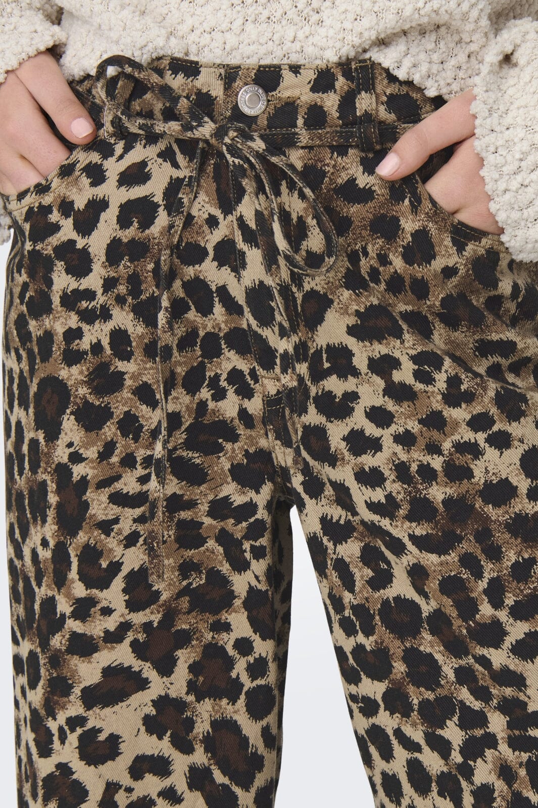 Pantalons de Only en beige avec imprimé léopard noir. La coupe droite et la ceinture fournie donnent aux pantalons une allure décontractée avec une bonne liberté de mouvement.