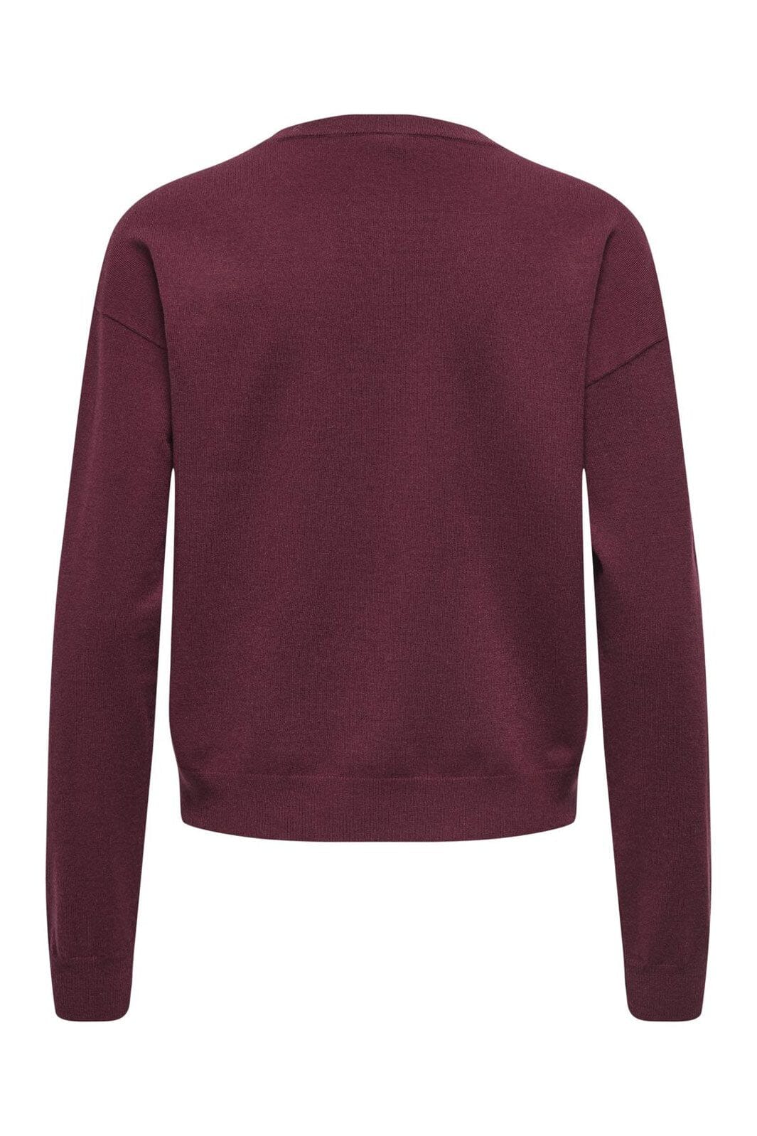 Pull en tricot de Only en rouge bordeaux profond. L'avant présente un motif en losange décoré de paillettes, et le pull a un col rond.