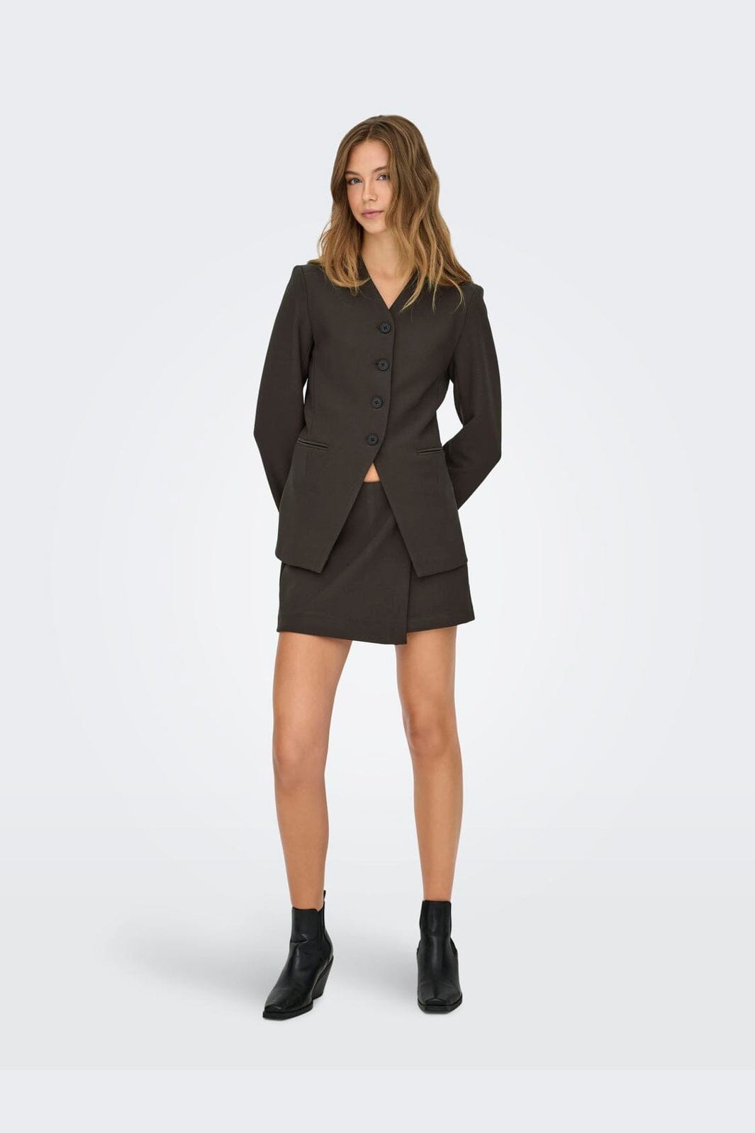 Skort marron foncé de chez Only avec chevauchement asymétrique sur le devant. Le skort présente une taille mi-haute et une longueur mi-cuisse.