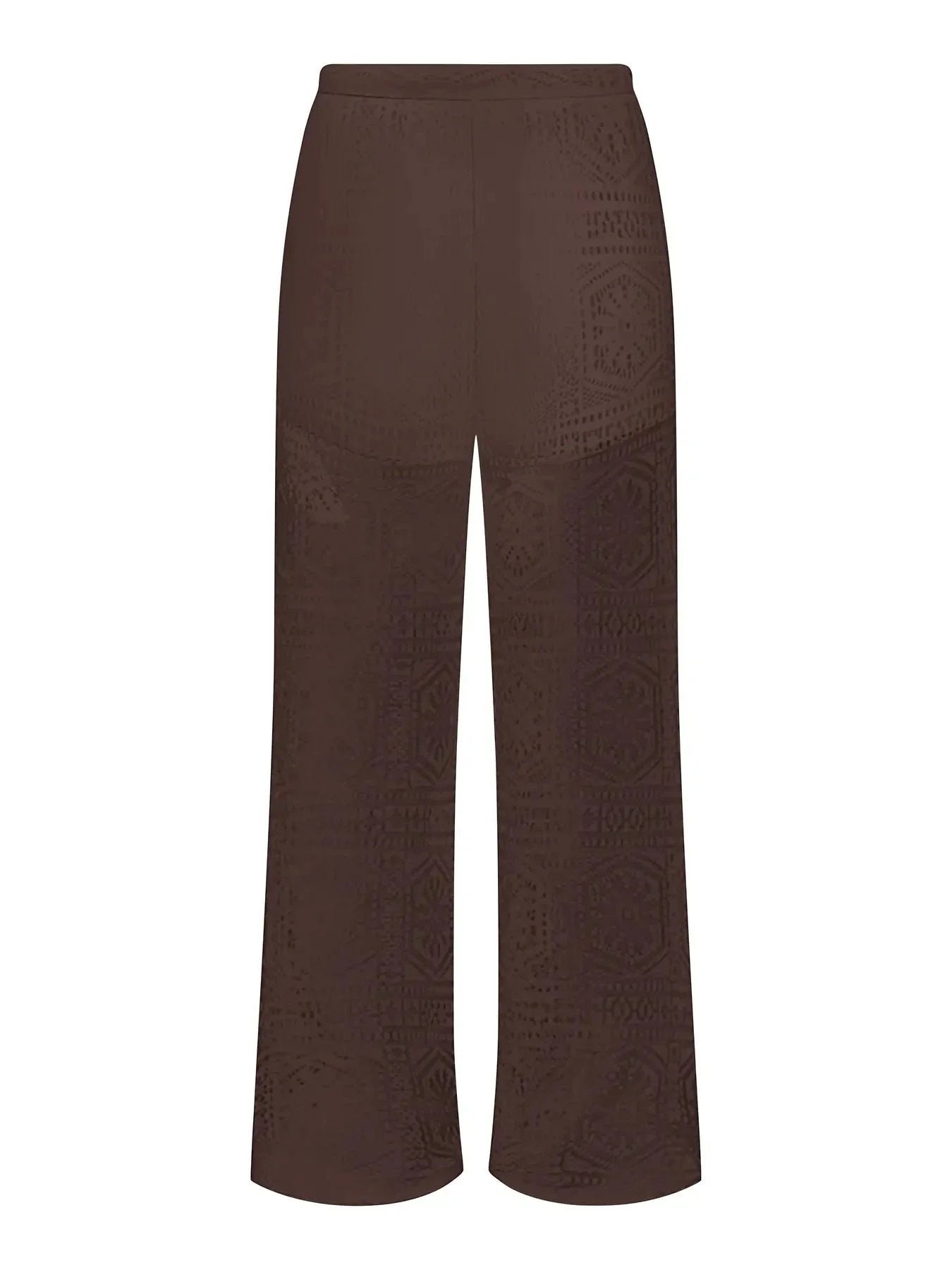 Pantalon ample de chez Only de couleur marron avec un motif en dentelle sur toute la surface. Le pantalon a une coupe ample et une taille élastique.
