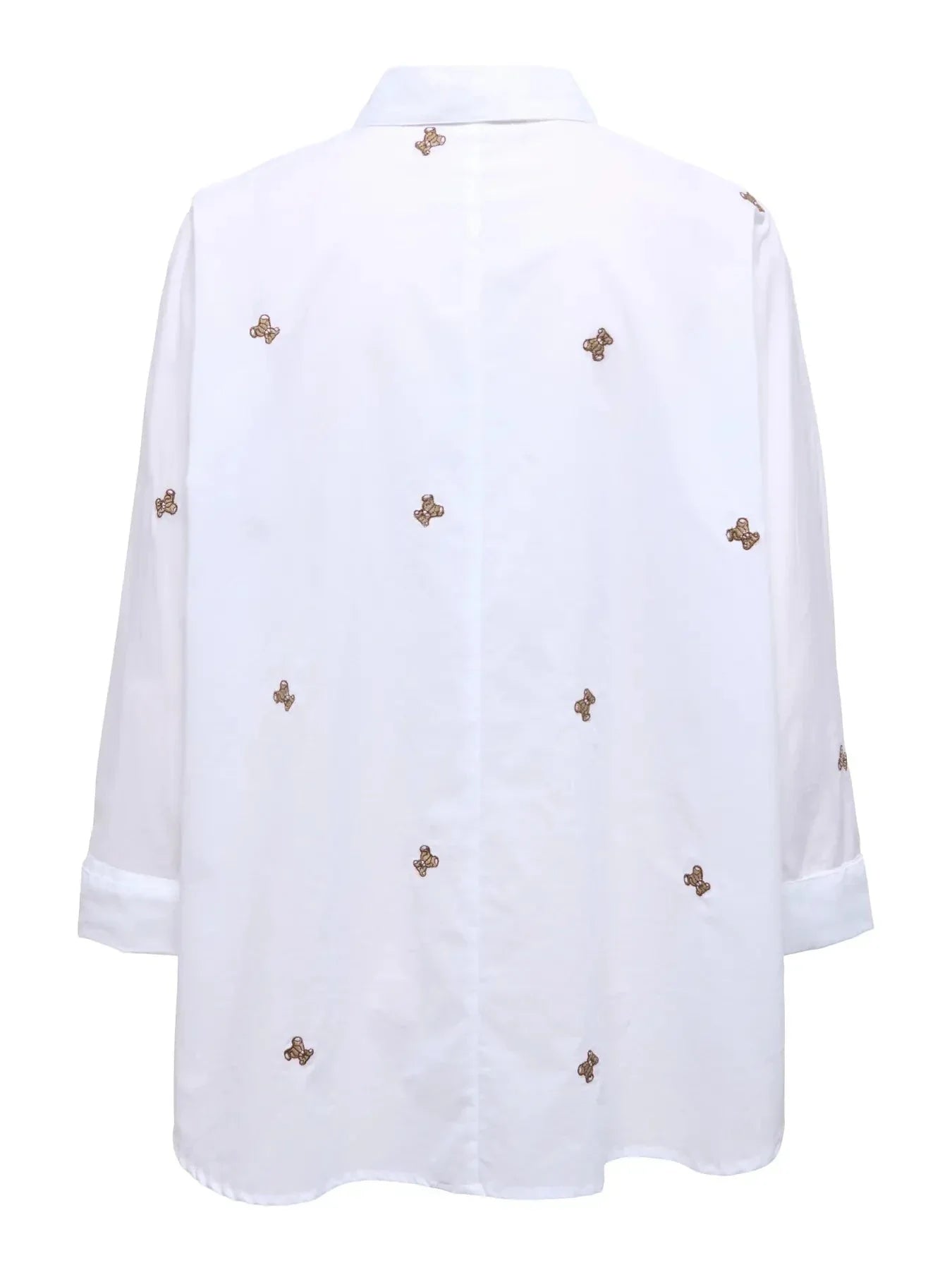 Chemise blanche de Only avec de petits motifs d’oursons brodés. La chemise a une coupe boxy et se ferme par des boutons sur le devant.