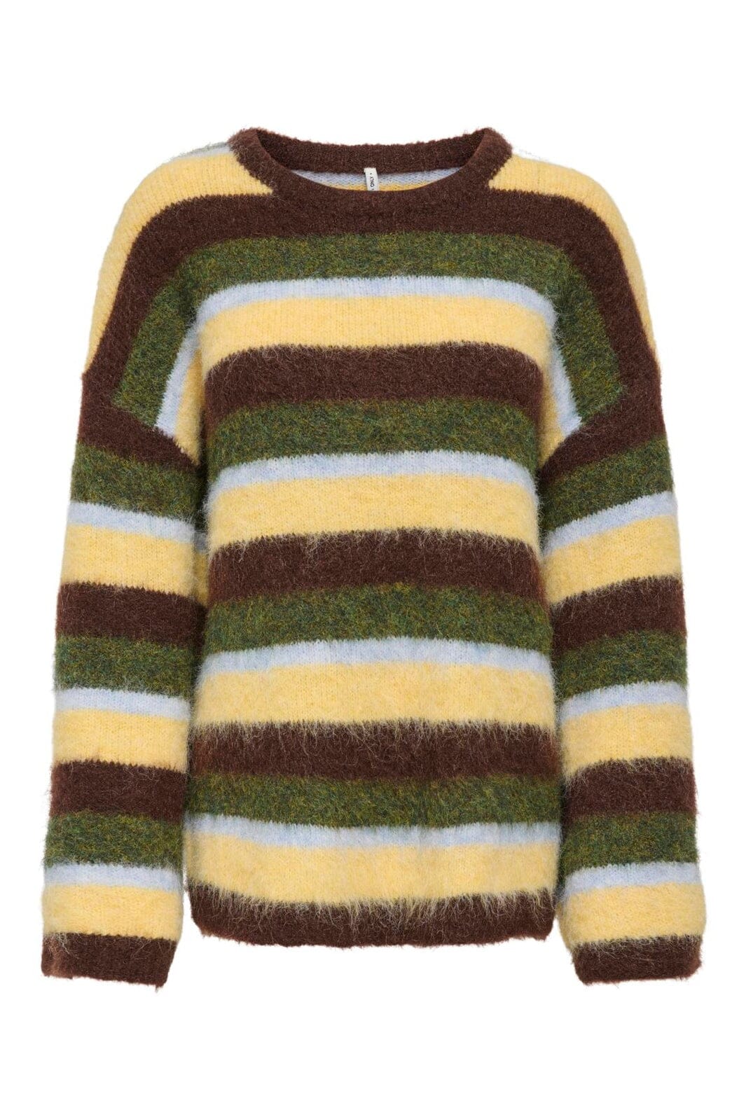 Only Onlperil Life Ls O-Neck Knt Couleur: 5020827 Pinecone Olive Branch/Windsurfer/Sunlight