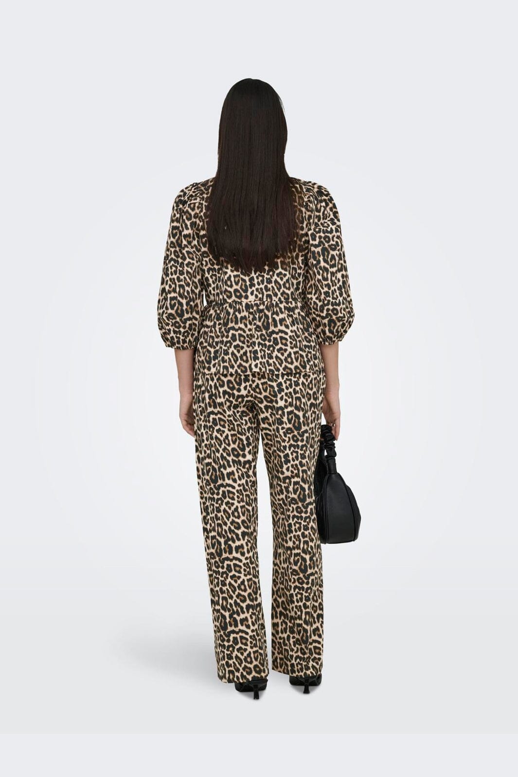 Un top de chez Only avec un imprimé léopard dans des nuances beiges. Le top présente un détail nœud sur le devant, des manches 3/4 et un col rond. La coupe regular fit offre une silhouette décontractée.