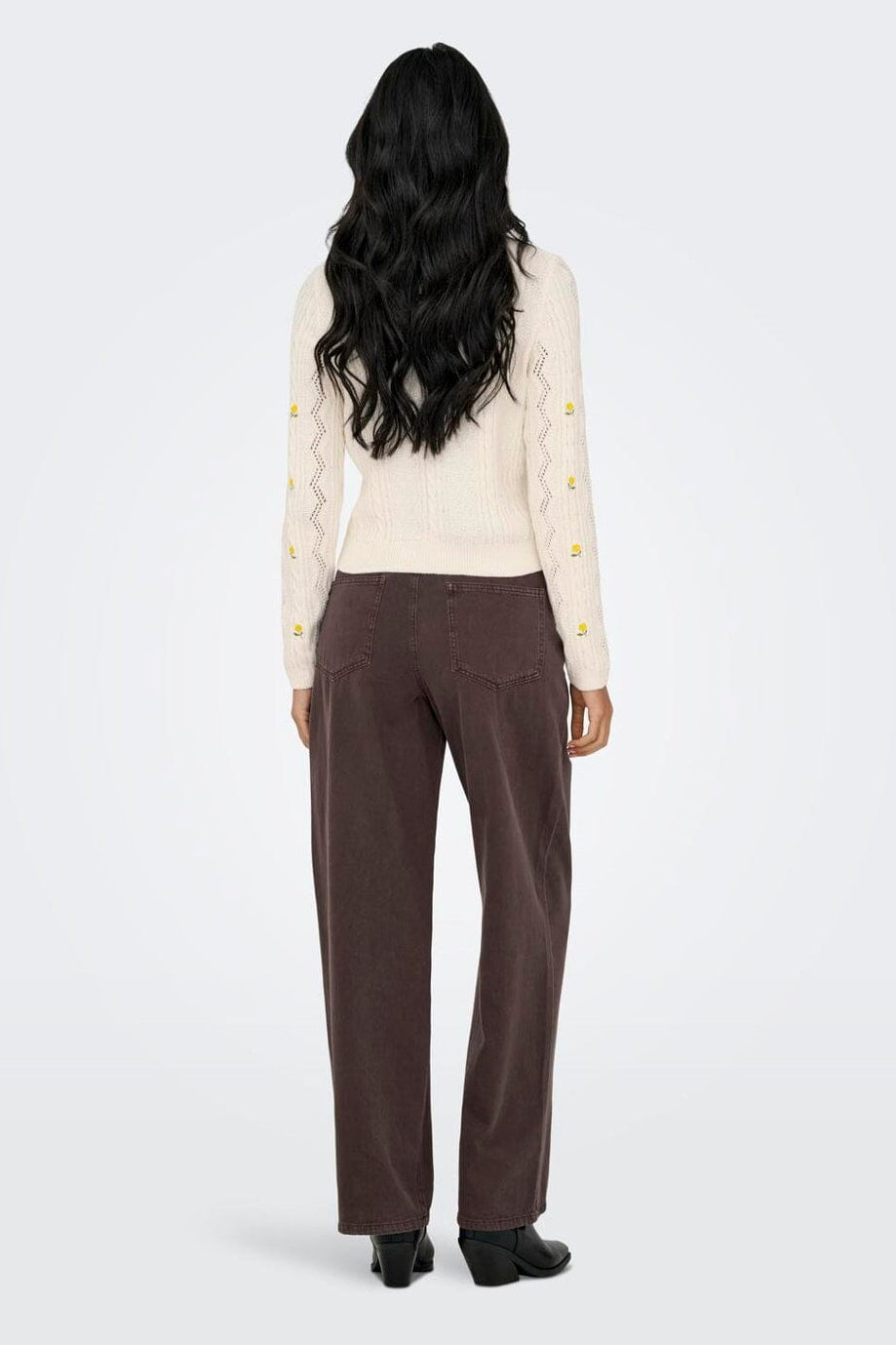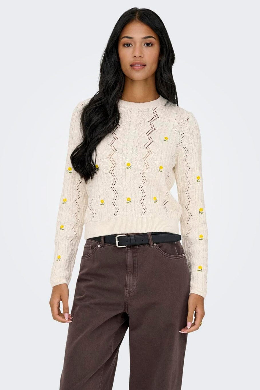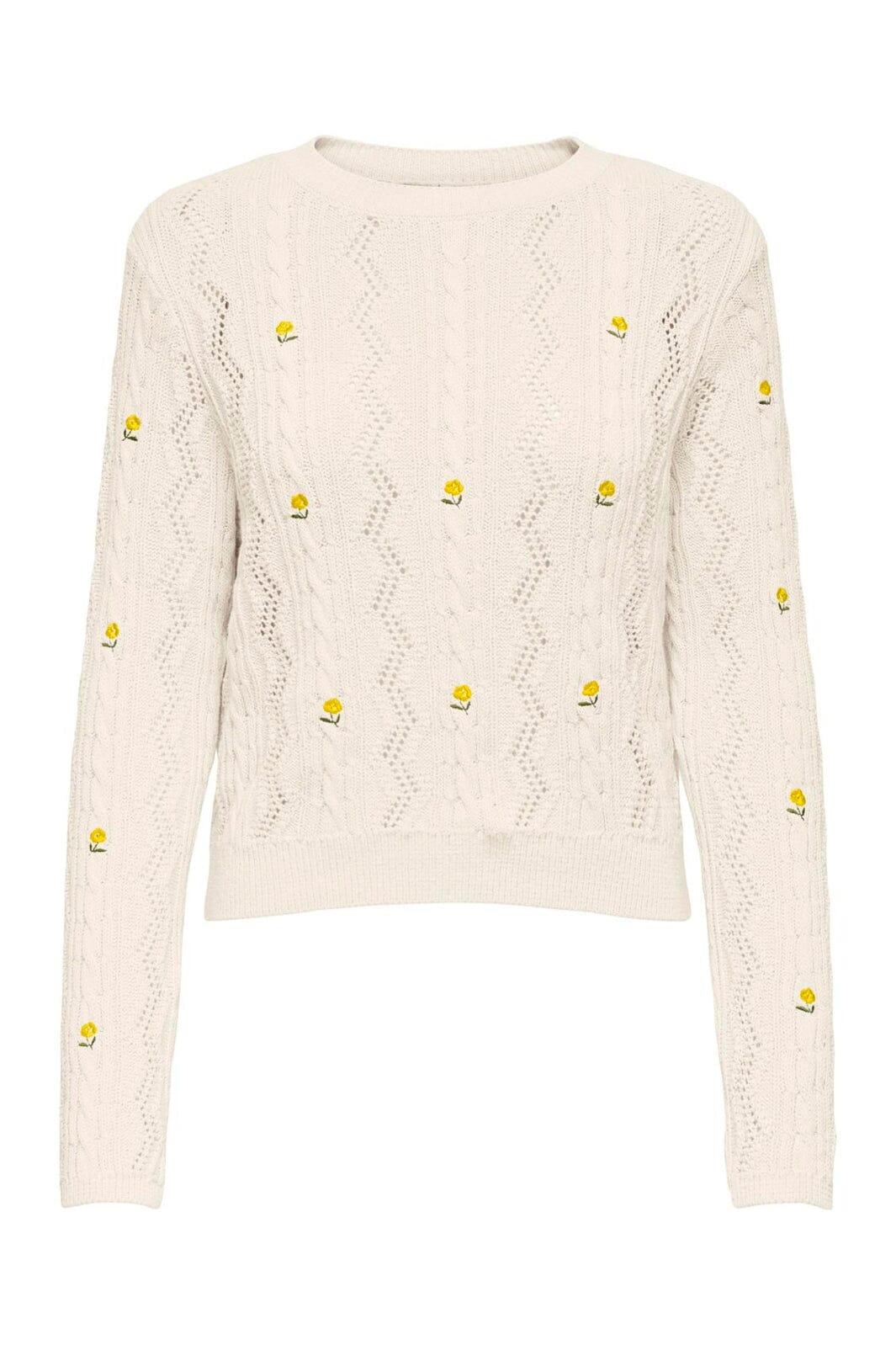 Only Onlrita Life Ls Embr Cable Knt Couleur: 4862605 Ecru Yellow Flower